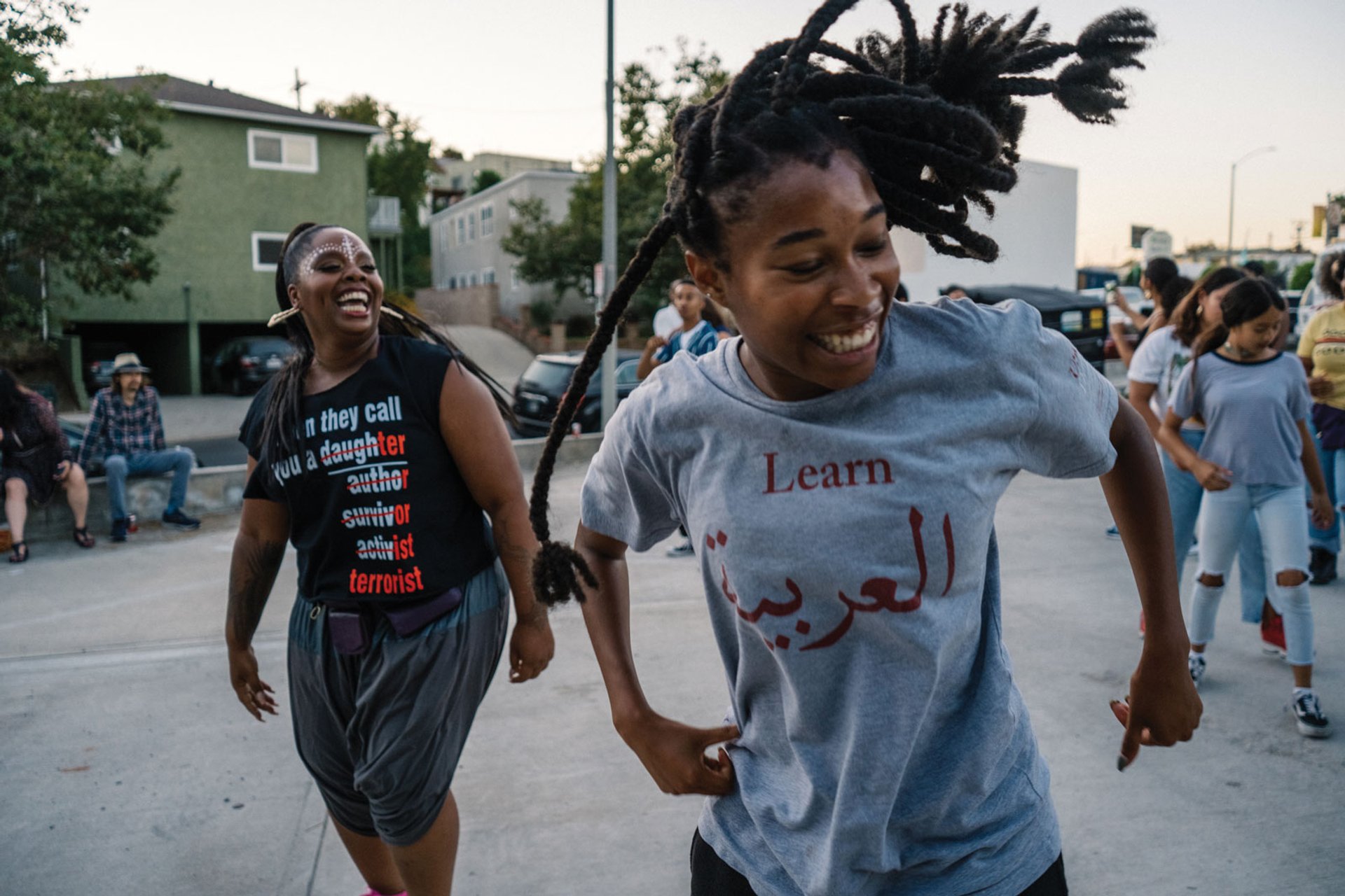 The main thing I was trying to respond to was the fact that all these children are in cages, at the border. It was when all of the images of their caging were being released. It’s so hard in those moments because it’s like, “What the fuck can you do?” And the moment I saw the images, I thought: “We need to go fucking dance.” We need to be in the streets, and we need to dance our asses off. The last four years of this administration has been demoralising: part of the response is to not allow them to take away our joy—not allow them to take away our laughter, our creativity. And the Electric Slide [which is central to the performance] is a staple for Black folks when we go to every event. At least one time, you gotta do the Electric Slide.