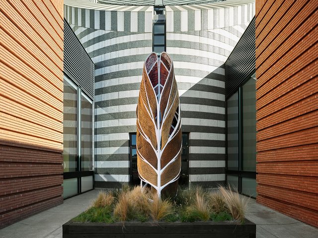 The project is the kind of “collaboration or partnership”, says the exhibition’s curator Paola Antonelli, that is at the core of Oxman’s self-coined design practice of “Material Ecology”. This practice “was always about putting together the natural, the human and the robotic,” Antonelli says. “It was about computation, the inputs of the human being as the architect, and then natural phenomenon. What’s changed today is the balance” of those three actors, the curator explaines.