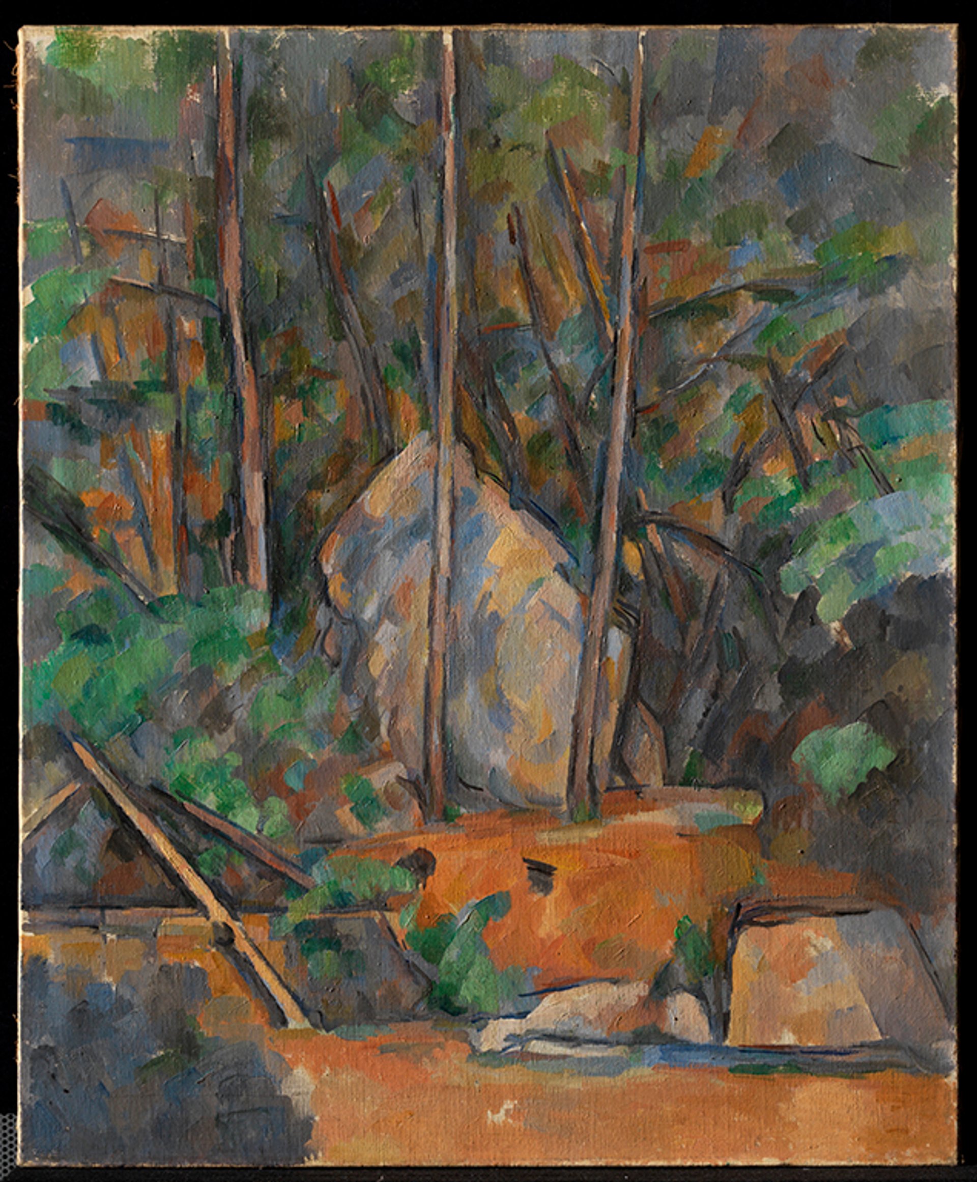 Cézanne completed around two dozen paintings in which rocks are vital to the composition. The 14 borrowed for the show track his absorption with these motifs from the mid-1860s, when he applied thick paint with a palette knife to render rock formations, to the 1870s, when he used patches of brushed paint or “taches” in parallel strokes, to the early years of the 20th century, when he depicted the stony terrain in slashing vertical and horizontal hatch marks.