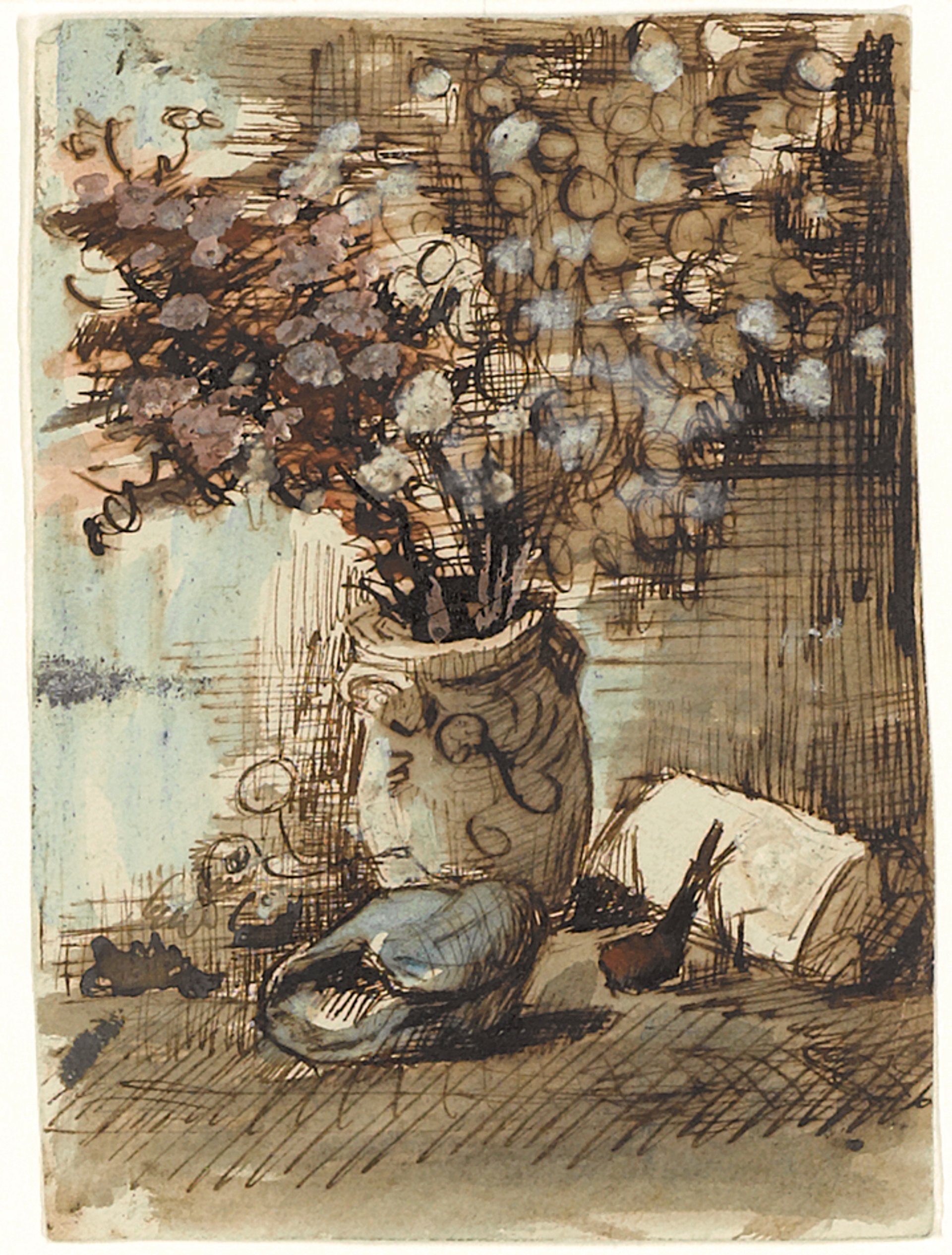Vincent van Gogh’s watercolour of Still Life with Vase, Honesty, Pipe and Tobacco (1885) Courtesy of the Van Gogh Museum, Amsterdam (Vincent van Gogh Foundation)