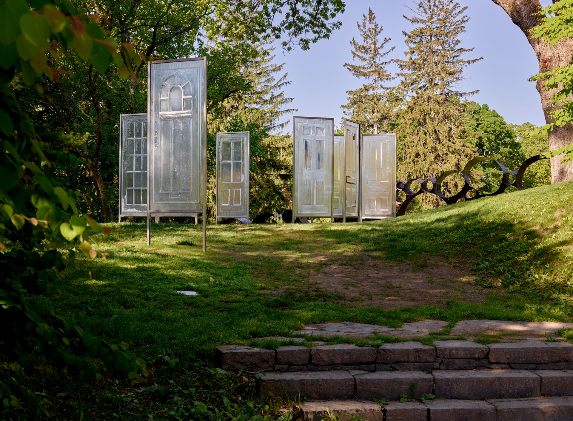 Some sculptures have also been adjusted, according to the artistic director of the park, John Ravenal. Dan Graham’s 2009 installation Crazy Spheroid - Two Entrances, a glass and stainless steel pavilion, will have signage requesting that visitors do not enter the work when others are present; Andy Goldsworth’s immersive 2019 work Watershed will operate with a one-way visitor path; and the park has removed the sticks that visitors use to activate sounds in Paul Matisse’s kinetic 1980 work The Musical Fence—an installation, like so many others, that only becomes whole with human interaction.