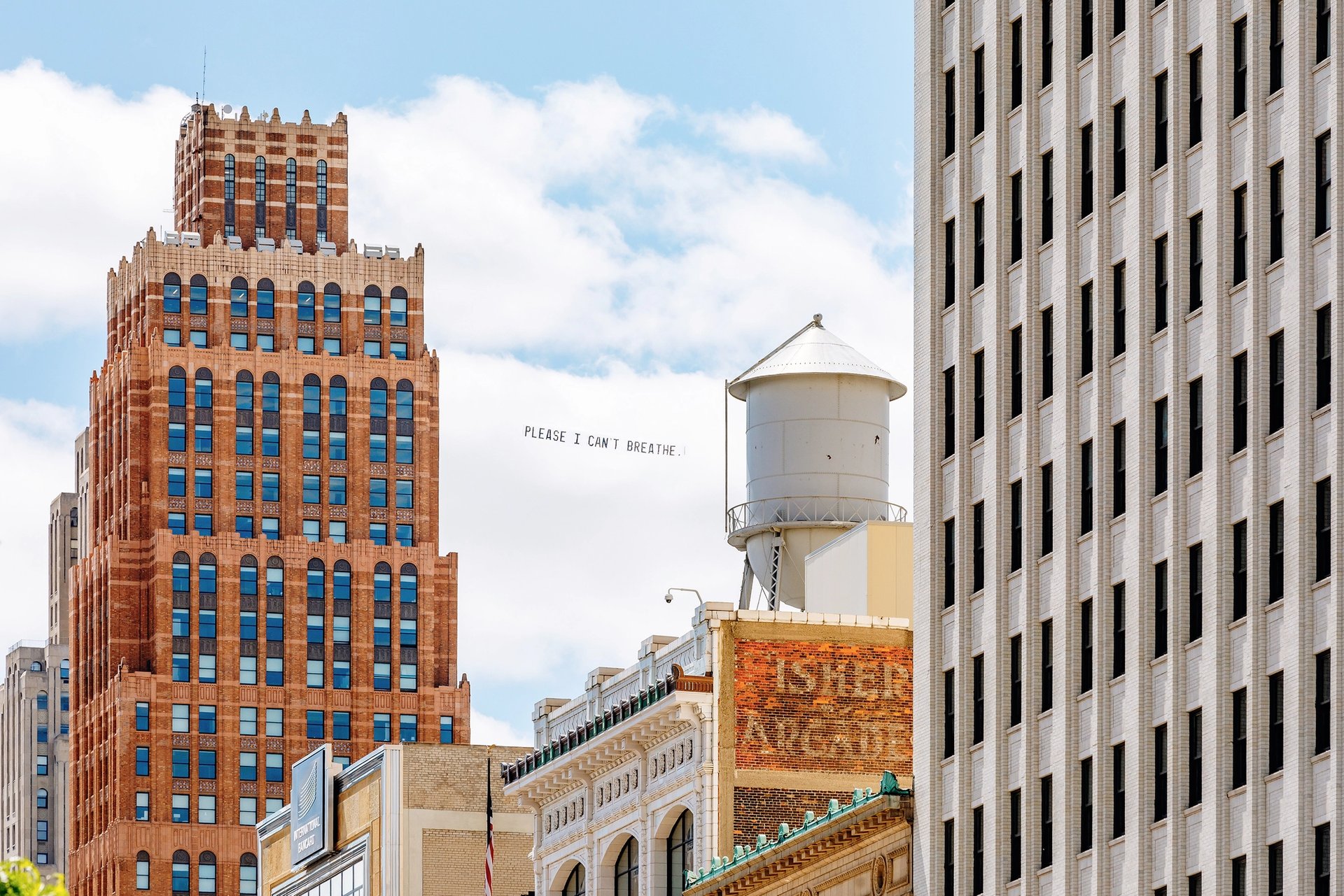 As civil unrest erupted nationwide last week due to the ongoing riots and protests in response to the murder of George Floyd and other African-Americans who have been killed by police officers, an aerial demonstration by the artist Jammie Holmes was flown across five major US cities further condemning systemic racism and police brutality.