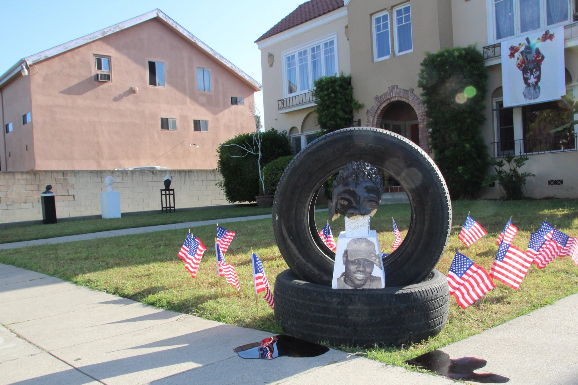 Over the course of two weekends in May, dozens of artists all over Los Angeles exhibited work outside their homes or in other public spaces for Drive-By-Art. The project was organised by the artist Warren Neidich, who saw the detrimental effect that the pandemic was having on the art community. “Artists depend on exhibitions, otherwise they’re isolated,” Neidich says. The West Coast edition was preceded by one in early May on the South Fork of Long Island in New York. Given the success of the East Coast version, Neidich enlisted the help of three Angeleno art-world figures—artist Renee Petropoulos, and curator/writers Michael Slenske and Anuradha Vikram—to help mount the project in LA.
