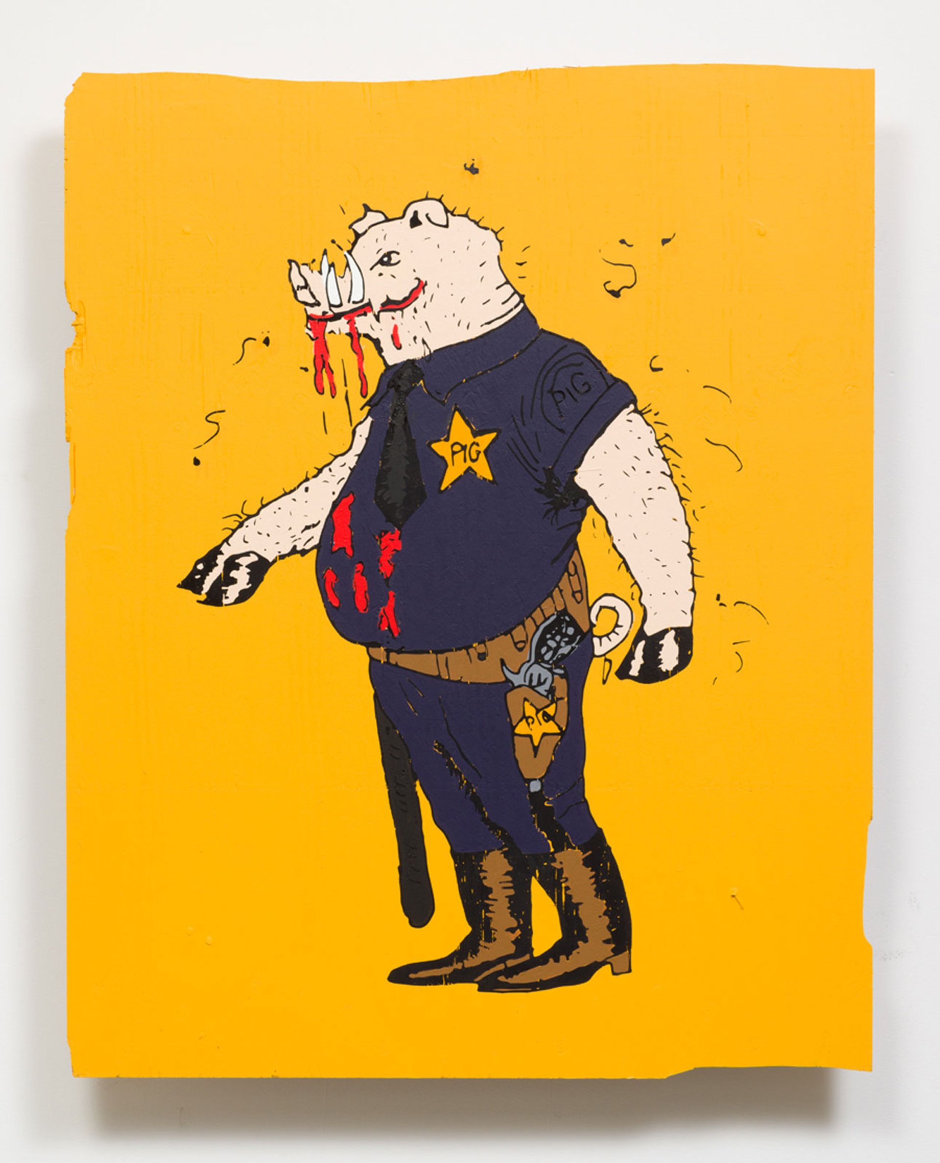 Awol Erizku's This is a Pig. He Tries to Control Black People (original drawing by James Teemer) (2017)