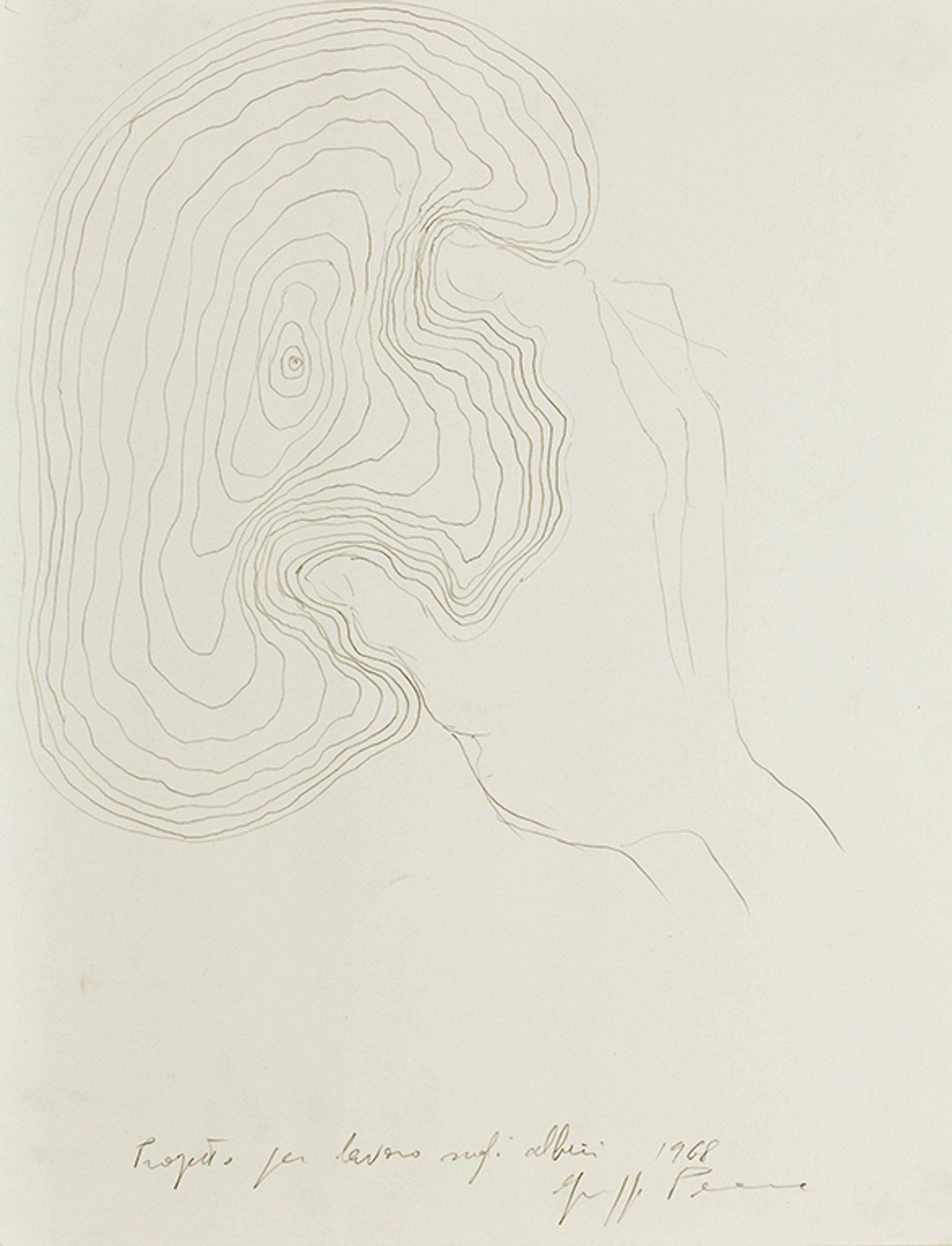 Giuseppe Penone, Working Project on Trees (1968), graphite on paper © Archivio Penone
