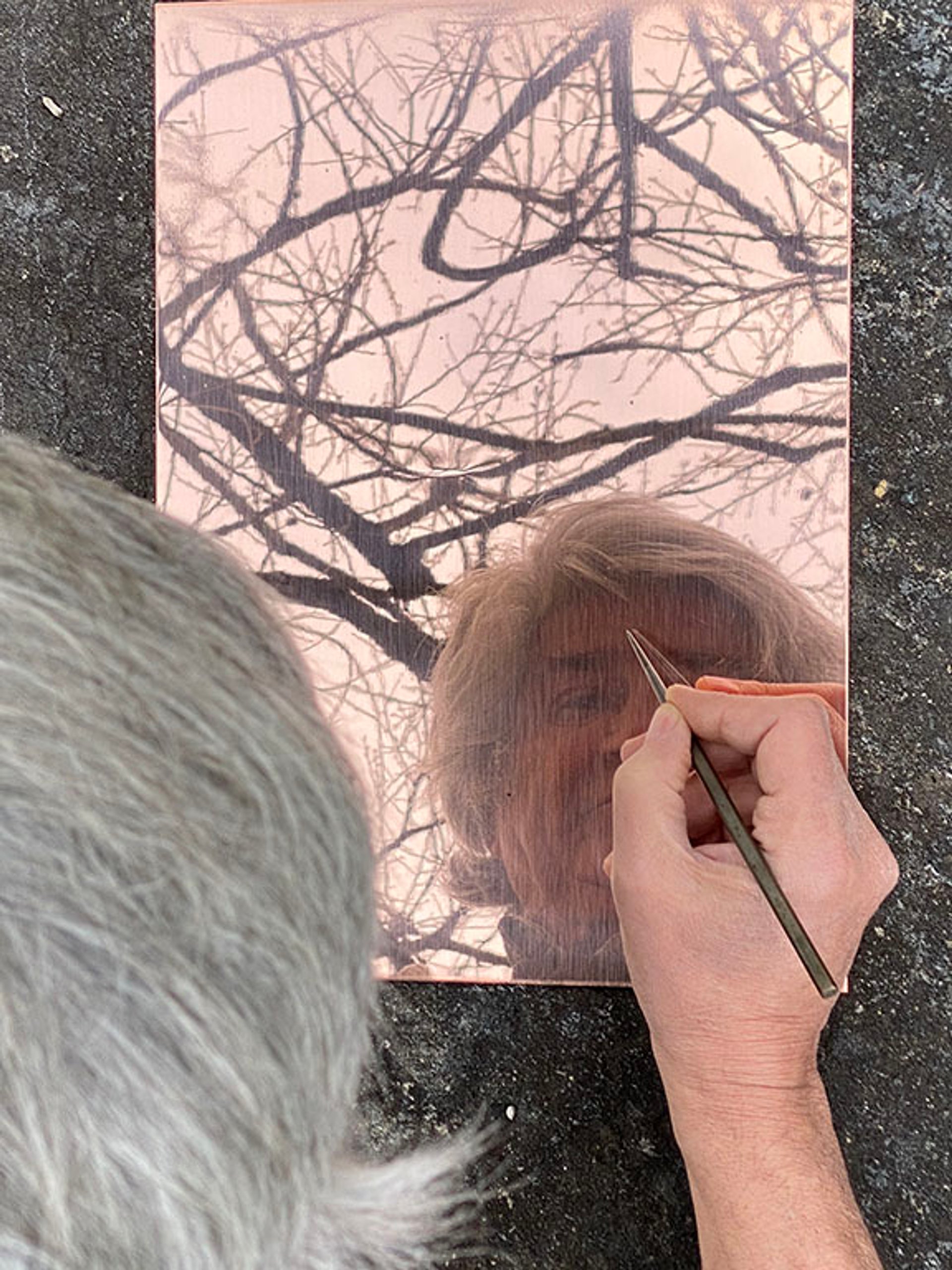 Giuseppe Penone working on an etching on a copper plate © Archivio Penone
