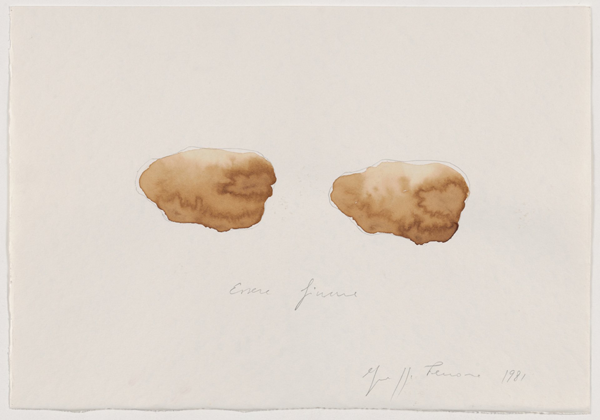 Another highlight is a group of works on paper related to To Be a River, in which Penone retrieved a stone from a river in his native Piedmont region and then sculpted another one from a quarry to exactly replicate the first one. Some of those works reproduce the two stones using different techniques (pencil and coffee on paper, watercolour and pencil on paper, pencil on paper and graphite on paper) while others simply spring from a similar inspiration.