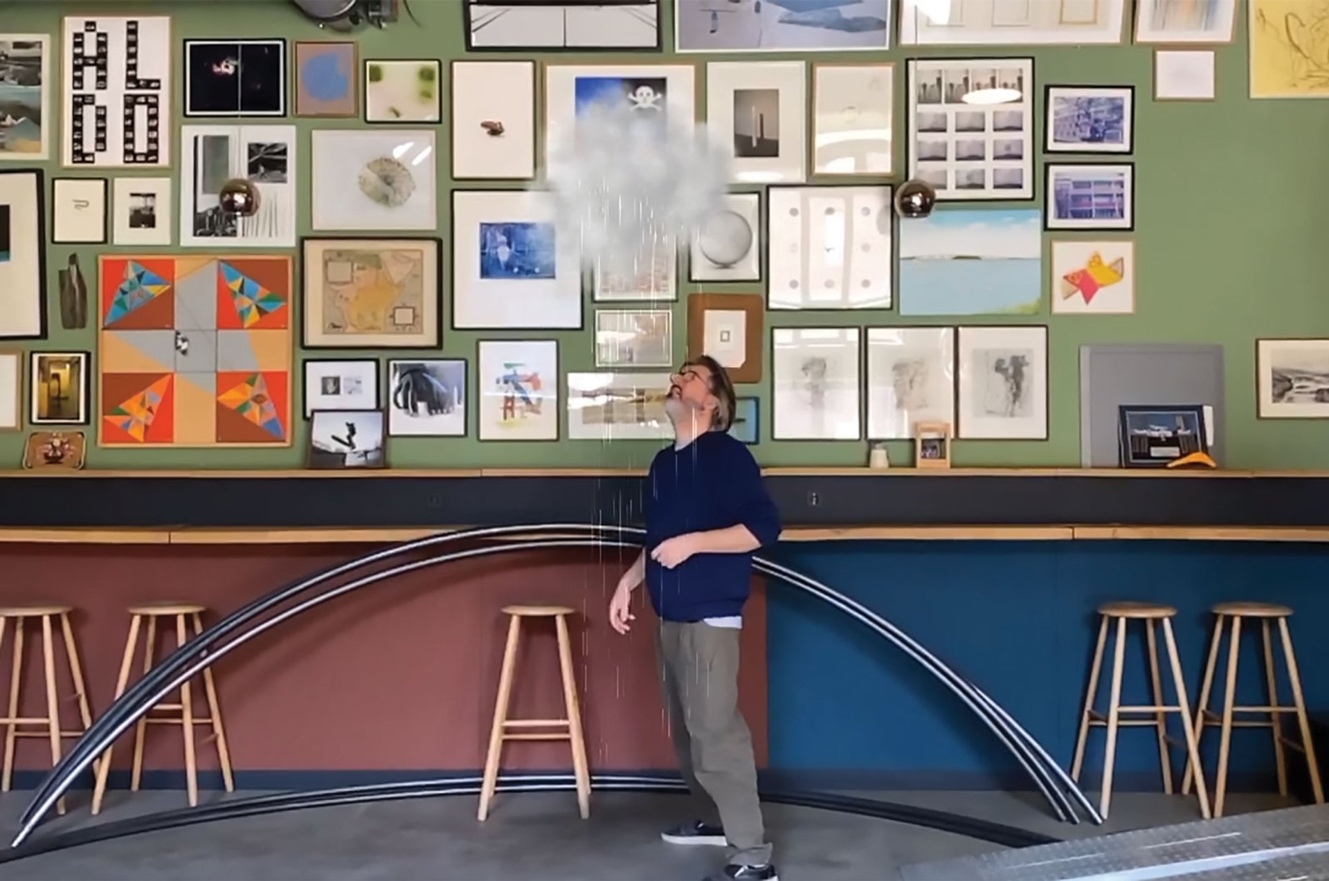 Olafur Eliasson beneath his virtual rain cloud, which is part of his Wunderkammer (2020) AR work © Olafur Eliasson & Acute Art
