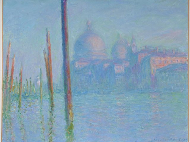 This watercolour, showing a vessel in the foreground bathed in a blue light, captures the vast scale of the Giudecca Canal, allowing Turner to be slightly more experimental. Warrell says that “in his field notes, the western Giudecca was a place that resonated in his later work. Much of this has to do with the width and openness of the canal, which enabled him to produce expansive prospects of Venice, where the waterfronts on either side frame the natural drama of light—whether sunrise or sunset—infusing and transforming the space in between.” The wispy outline of Venetian landmarks around the perimeter, such as the campanile of San Marco, frame the atmospheric work.