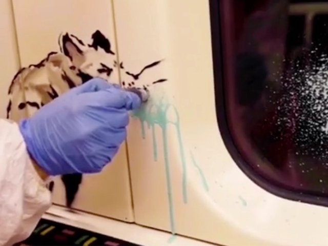 No stranger to covering his own face, the artist who is famous for hiding his real identity posted a video on his official Instagram account that appears to show him—or an associate—stencilling and tagging a London underground train with several of his signature rat motifs. Face coverings are already mandatory on public transport.