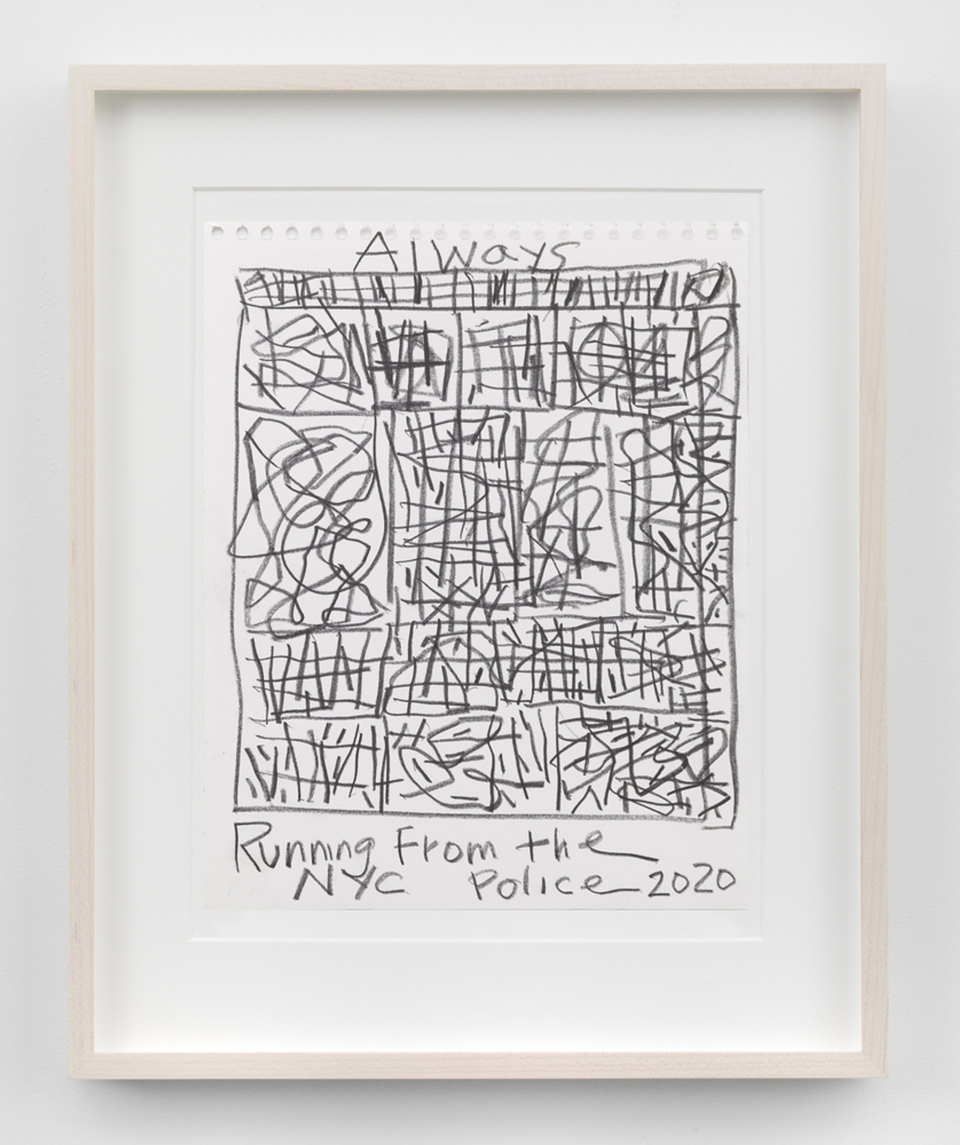 Some of the works were created while Whitney was on lockdown in New York in the wake of the coronavirus crisis. Untitled (Always Running from the Police - NYC 2020) (2020) focuses on police brutality. But the piece, which has sold, and other No to Prison Life sketches “weren’t always meant to be public”, Whitney says.