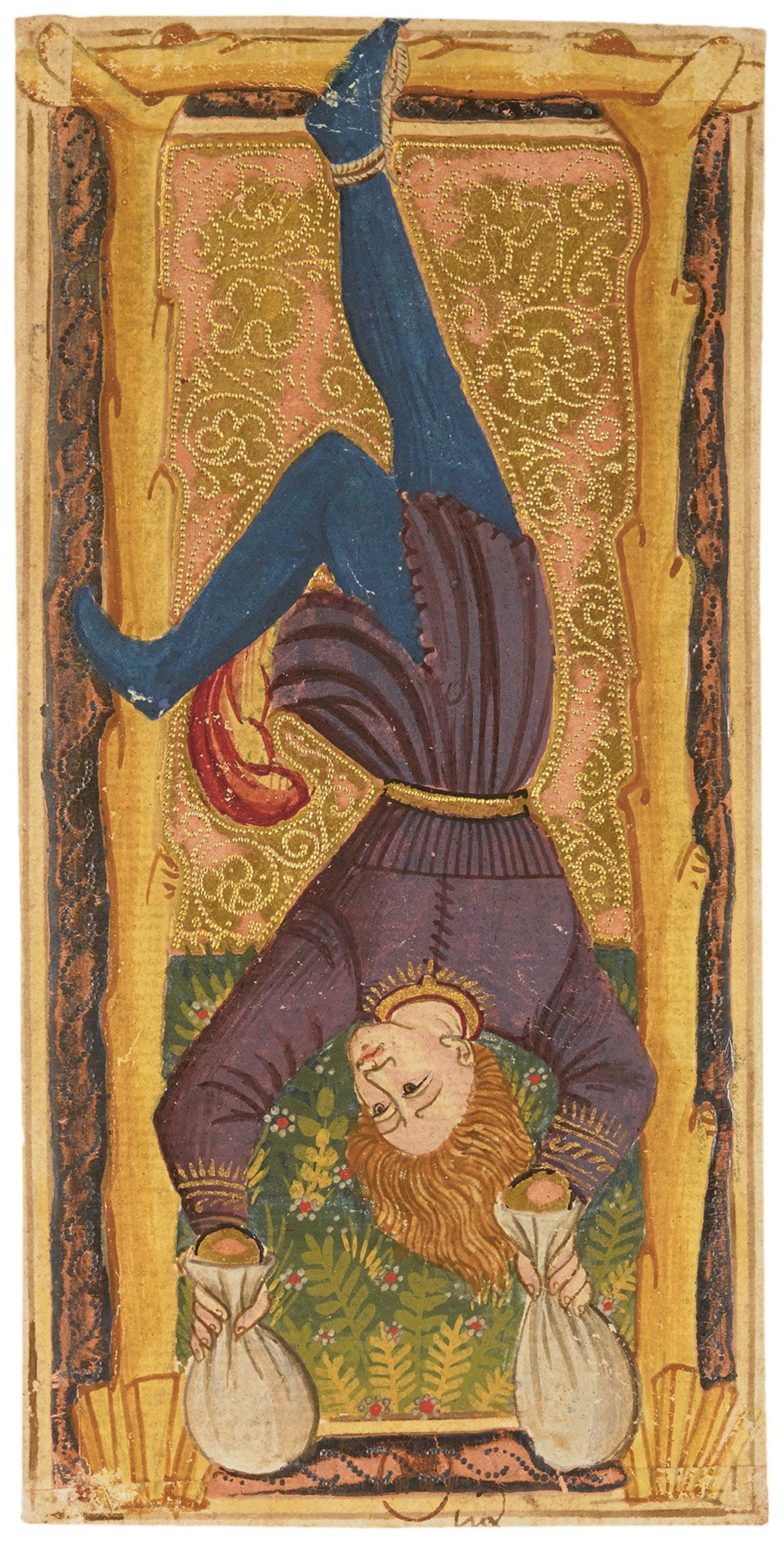 The practice of tarot was certainly not limited to Italy, although in its early days its application was predominantly reserved for courtly company. These 15th century French cards were once believed to be a commission to the artist Jacquemin Gringonneur at the bidding of the so-called "Mad King" Charles VI, who suffered numerous mental breakdowns during his reign, though historians now believe the works are the creation of an anonymous artist. The Charles VI or Gringonneur Deck, Unknown, France, 15th Century.