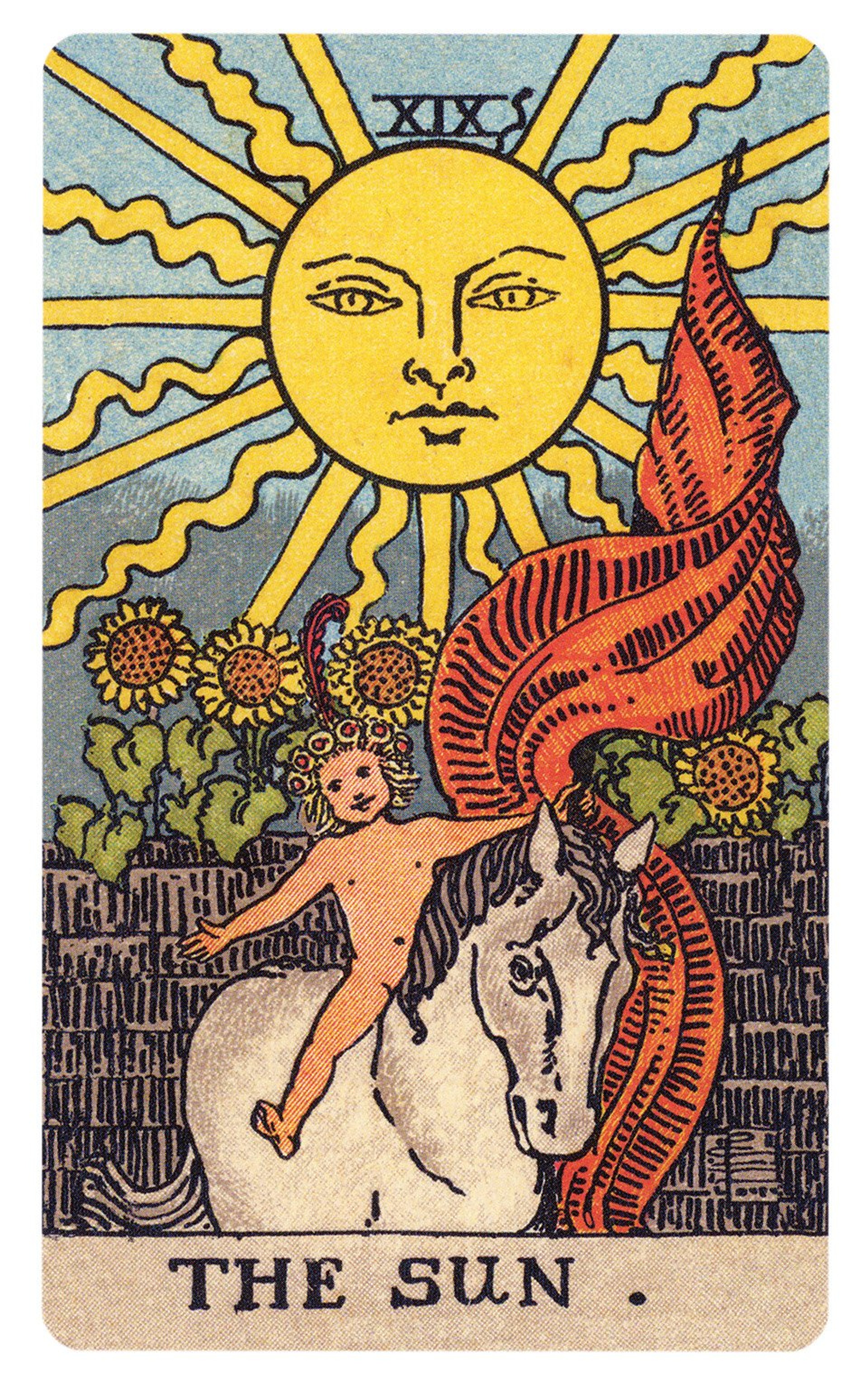 Tarot became more of democratic divination tool in the late 19th century with the rise of occultism in the Victorian era. But it was the creation of the Rider Waite Smith deck in 1910 that propelled the archaic practice into the modern mainstream. While some imagery remains similar to that found in earlier decks, much of the Christian references were toned down. For instance the "Pope" card became the "Hierophant" and the "Papess" became the "High Priestess". The Sun card, which would have had Christ-like connotations in early decks, instead is reworked into a more general representation of health and abundance. The Rider Waite Smith Tarot, by Pamela Colman Smith and AE Waite, England, 1910.