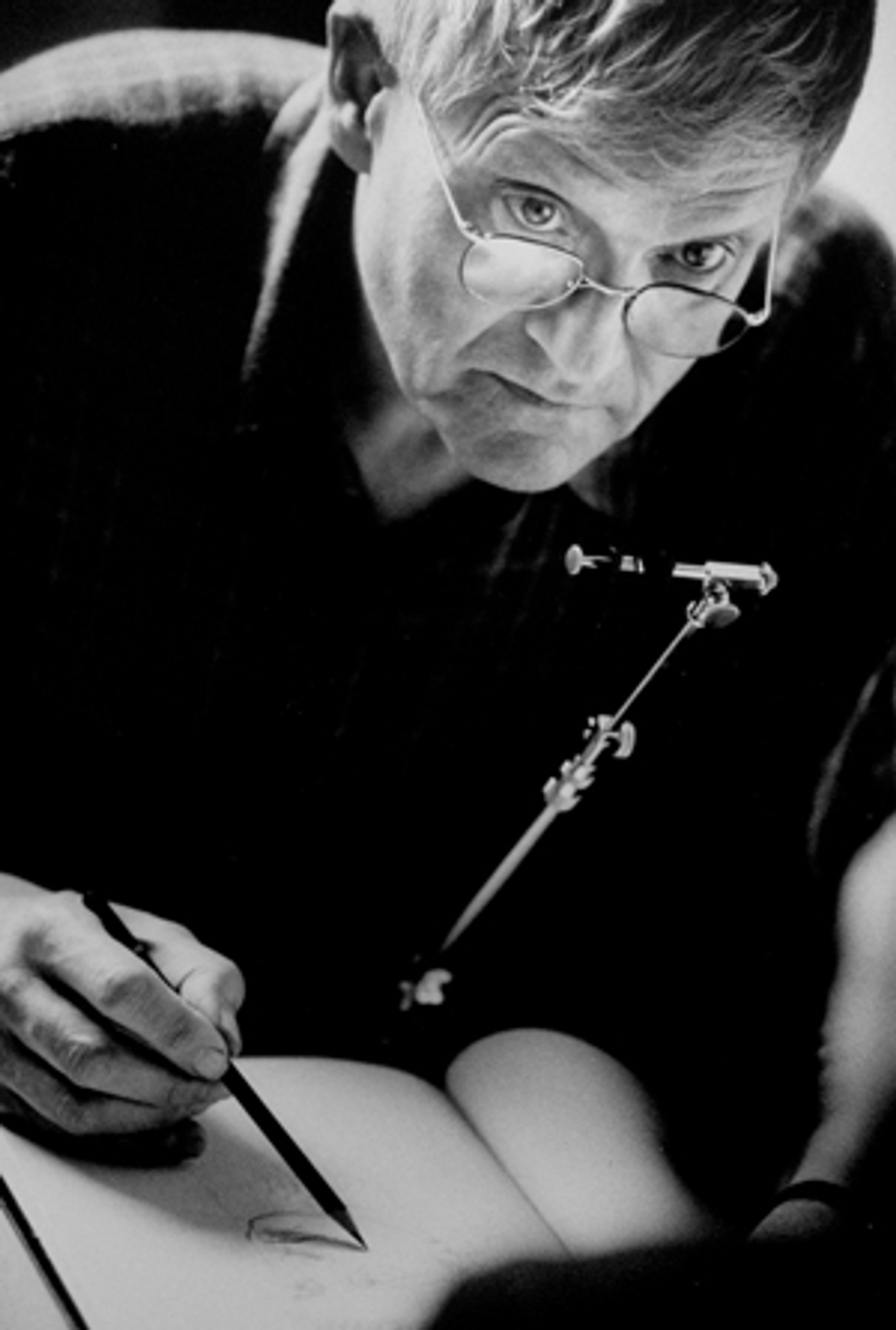 David Hockney drawing with the the aid of a camera lucida (1999) © Phil Sayer