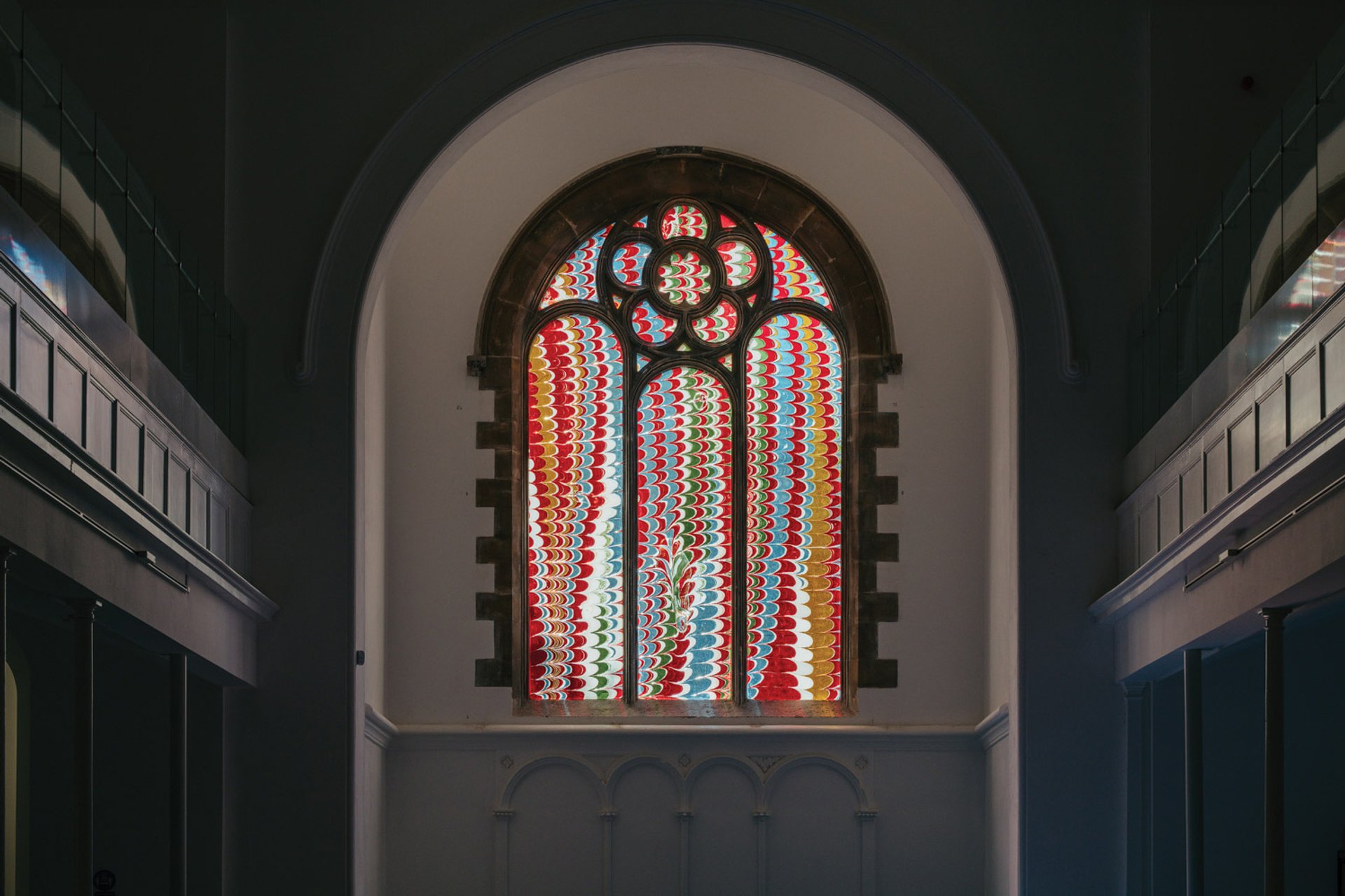 Leonor Antunes’s newly commissioned stained glass window for the museum Photo: Dom Moore