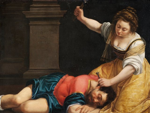 Gentileschi (1593-1654 or later) was born in Rome, the daughter of Orazio Gentileschi, court artist of Charles I. Orazio trained her, but as a young woman she was raped by a fellow painter and then had to endure a horrific trial in which she was tortured to prove she was telling the truth. After her assailant was convicted, she moved to Florence and embarked on an unhappy marriage.