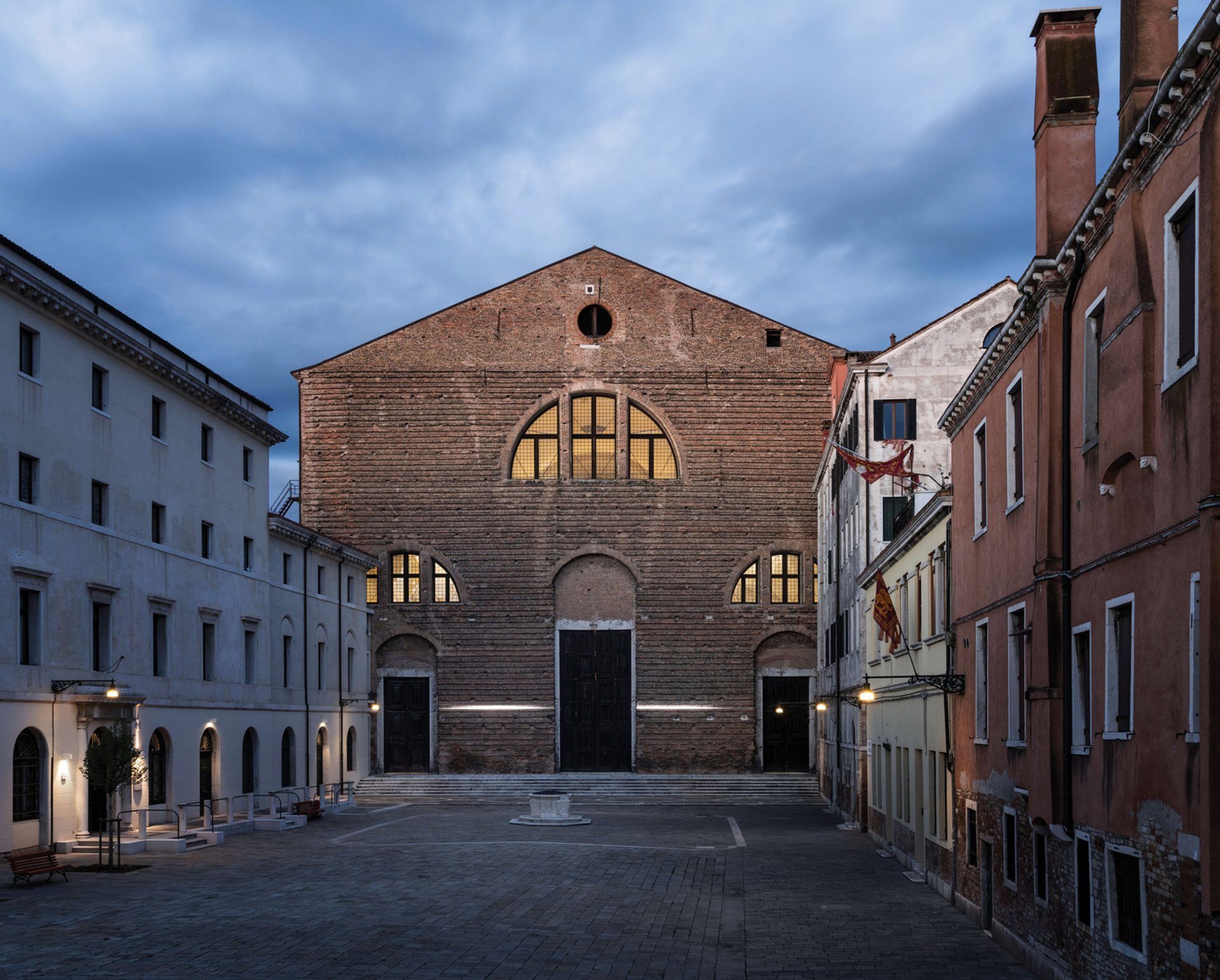 A light installation now runs horizontally across San Lorenzo’s façade, denoting the height the Intergovernmental Panel on Climate Change predicts Venice’s waters will reach by 2100—6m above sea level—leaving much of the city uninhabitable and destroying its centuries-old cultural heritage.