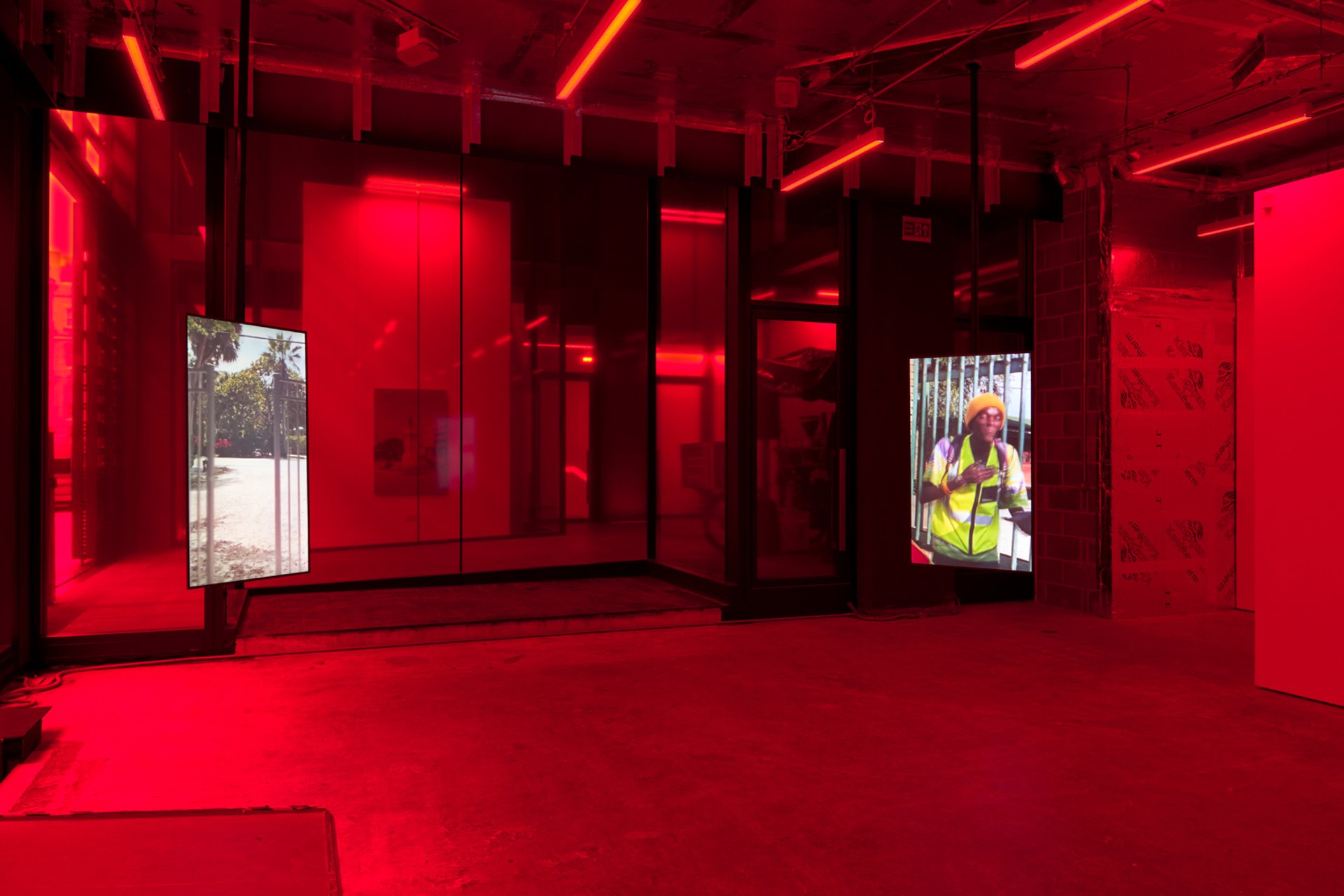 Bathing Sadie Coles HQ's Cork Street pop up space in red light, Martine Syms's installation Ugly Plymouths (until 31 October) provides a dramatic setting for quotidian content. First shown earlier this year in Los Angeles, it presents a "three-part play" consisting of footage from the artist's life, simultaneously shown across three separate screens. Shot entirely on an iPhone over the course of several years, before then being processed through a Super 8mm film camera, it contains no discernible narrative. Voices speak over one another and characters slip in and out of frame with little context. Ten seconds of a Nicki Minaj concert is followed by grainy shots of the sea and then an afternoon walk along a street. Pops of red—roses, Syms's cherry-coloured braids and the embers of a joint she smokes in a selfie—are all that is provided to anchor the visual experience. Fairly soon, however, you become more content with this aimless flow, noticing how the camera zooms and pans according to the motions of Syms's body—her hands are almost as evident here as if we were witnessing their marks on a physical object. Speaking to "troubled connections", the work is remarkably current. Not only for its authentic portrayal of daily American life, but in its insistence that a collection of unremarkable experiences is worthy of our focus. With no further explanation needed.