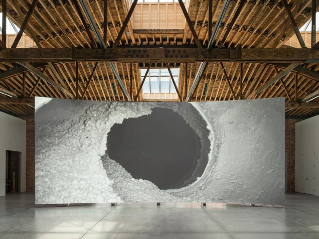 Raven’s film, meanwhile, shot at a concrete plant in central Idaho, is in black and white and lasts around 50 minutes. The artist records the transformation of minerals and binders into ready-made concrete in the work.