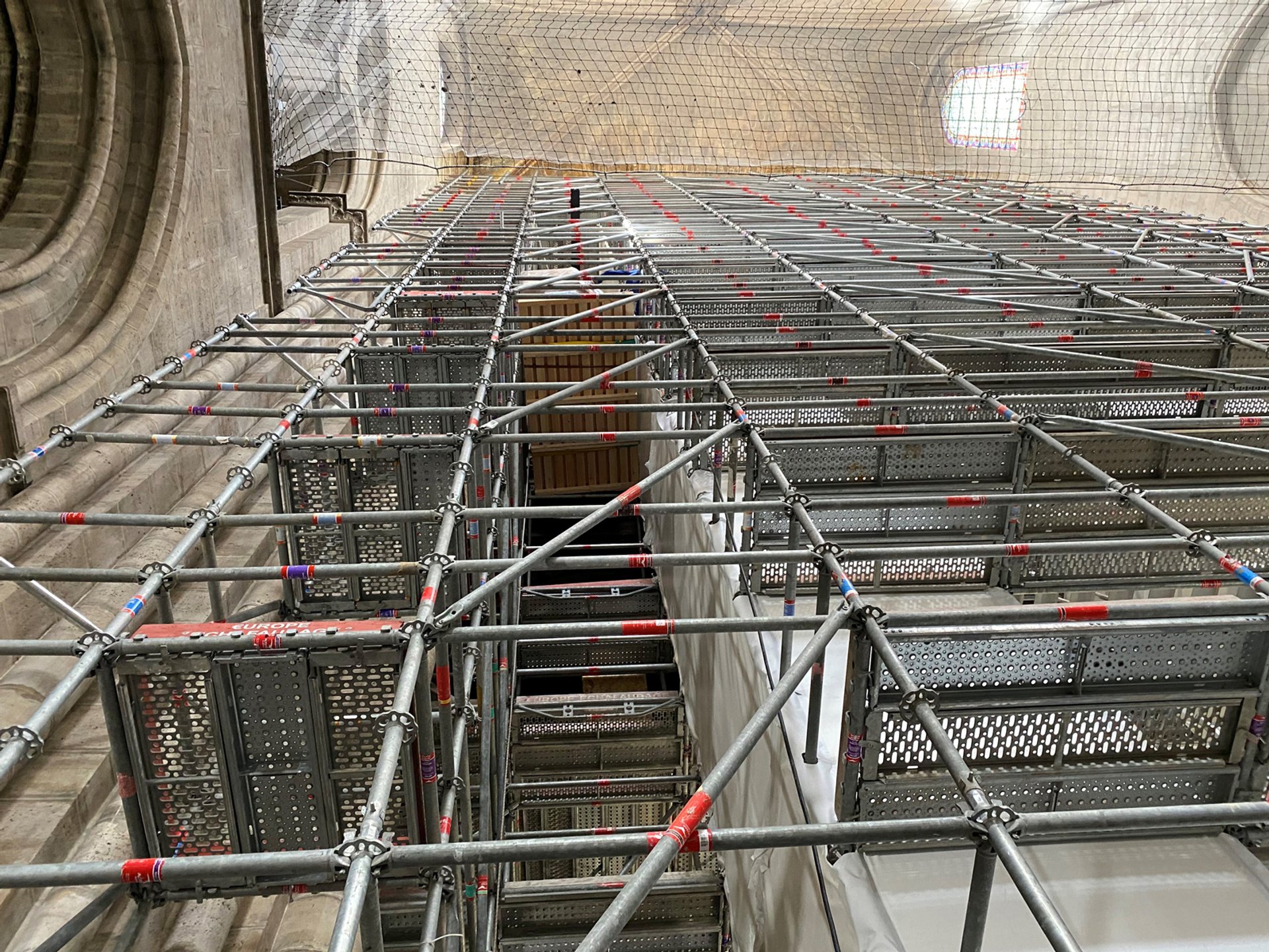 A nearly 30-metre-high scaffolding was erected in the summer to enable the organ’s removal. The keyboard console was the first element to be lifted out in early August, which freed up space so that a work surface could be installed in front of the instrument. Over the past four months, thousands of metal and wooden pipes and box springs have been taken away in four waterproof containers and transported to a warehouse in the Parisian region. All that remains in the cathedral is the sideboard, some bellows and several pipes that are too fragile or difficult to remove and will therefore be cleaned on site.
