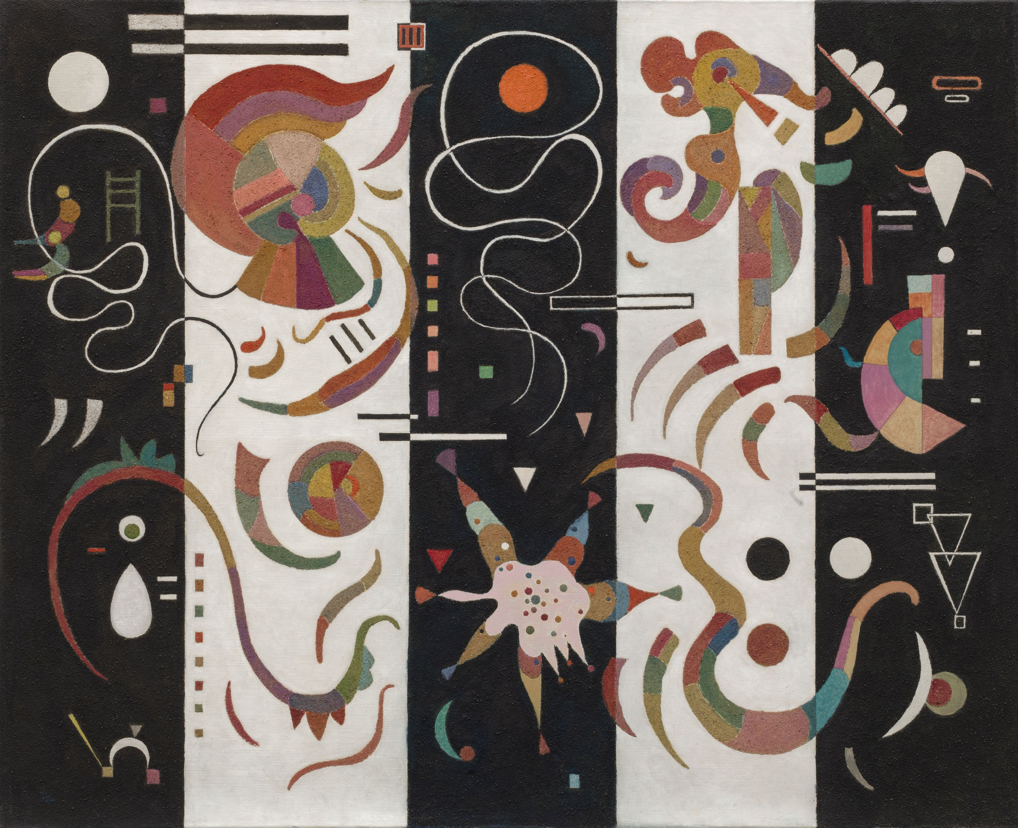 Eugene Von Bruenchenhein, an Outsider artist from Wisconsin, explored three substantial bodies of work in his lifetime: sculptures, which are primarily either ceramic or made from chicken bones; small, devotional photographic portraits of his wife Marie, which run the gamut from the erotic to the psychedelic, with a wide range in between; and paintings. Von Bruenchenhein began painting in the 1950s, developing techniques using brushes made from his wife’s hair, combs, his fingers, tools from his job as a baker and other idiosyncratic supplies to manipulate paint on masonite. They feel almost biblical, combining in a kaleidoscopic fervor Von Bruenchenhein’s anxieties about global atomic annihilation—as he was painting at the height of the Cold War, when such an apocalypse felt imminent—with his love for organic creatures and the cosmos. Though not exhibited until after his death, today it would be justified to view this oeuvre as a heavy hitter in the long lineage of artworks concerned with the creation and destruction myths of their particular zeitgeist. — Wallace Ludel