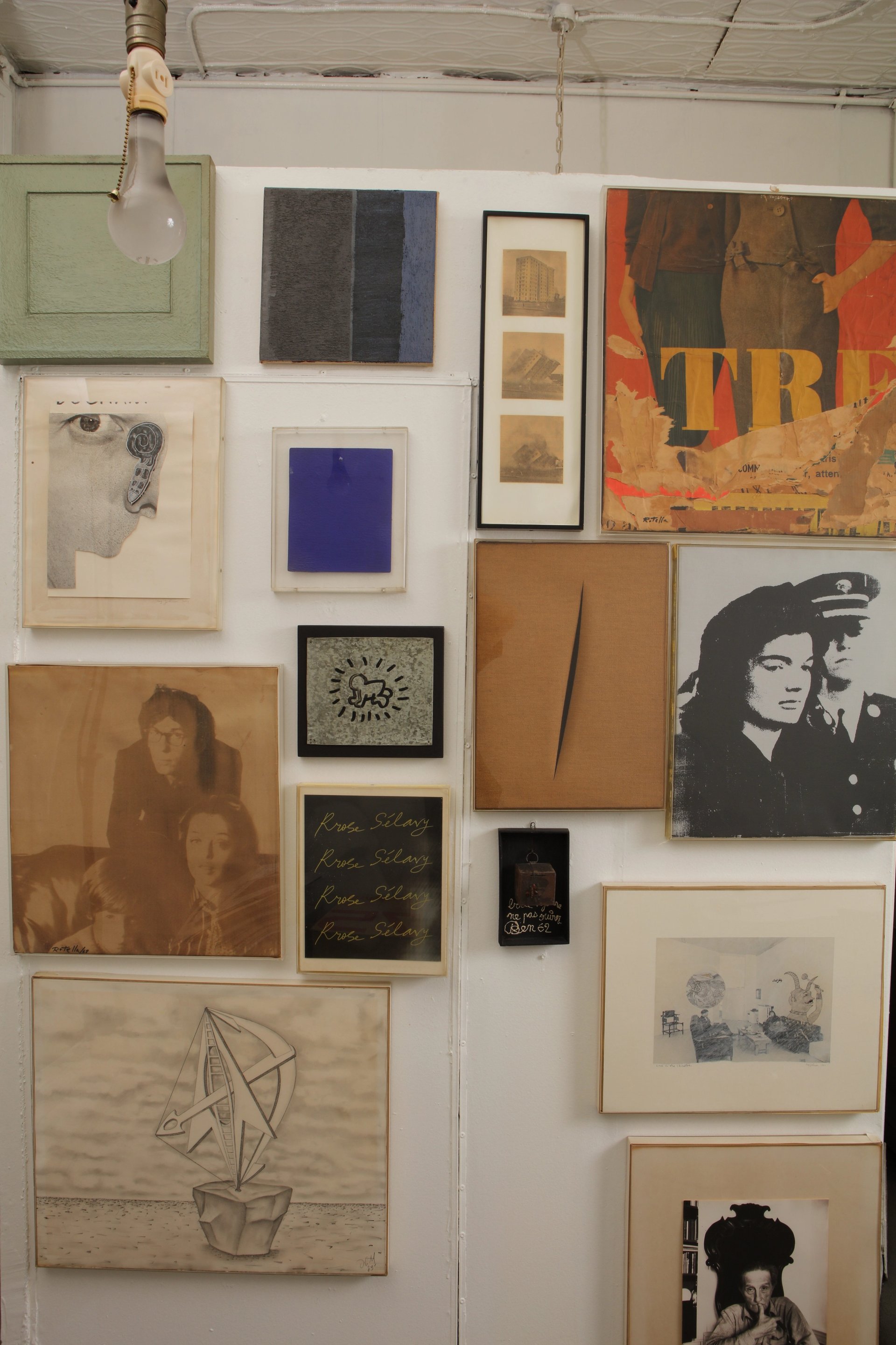 A shot from Christo and Jeane-Claude's studio—the works by Yves Klein, And Warhol and Lucio Fontana seen here and now up for sale Photo: André Grossman © The Estate of Christo V. Javacheff