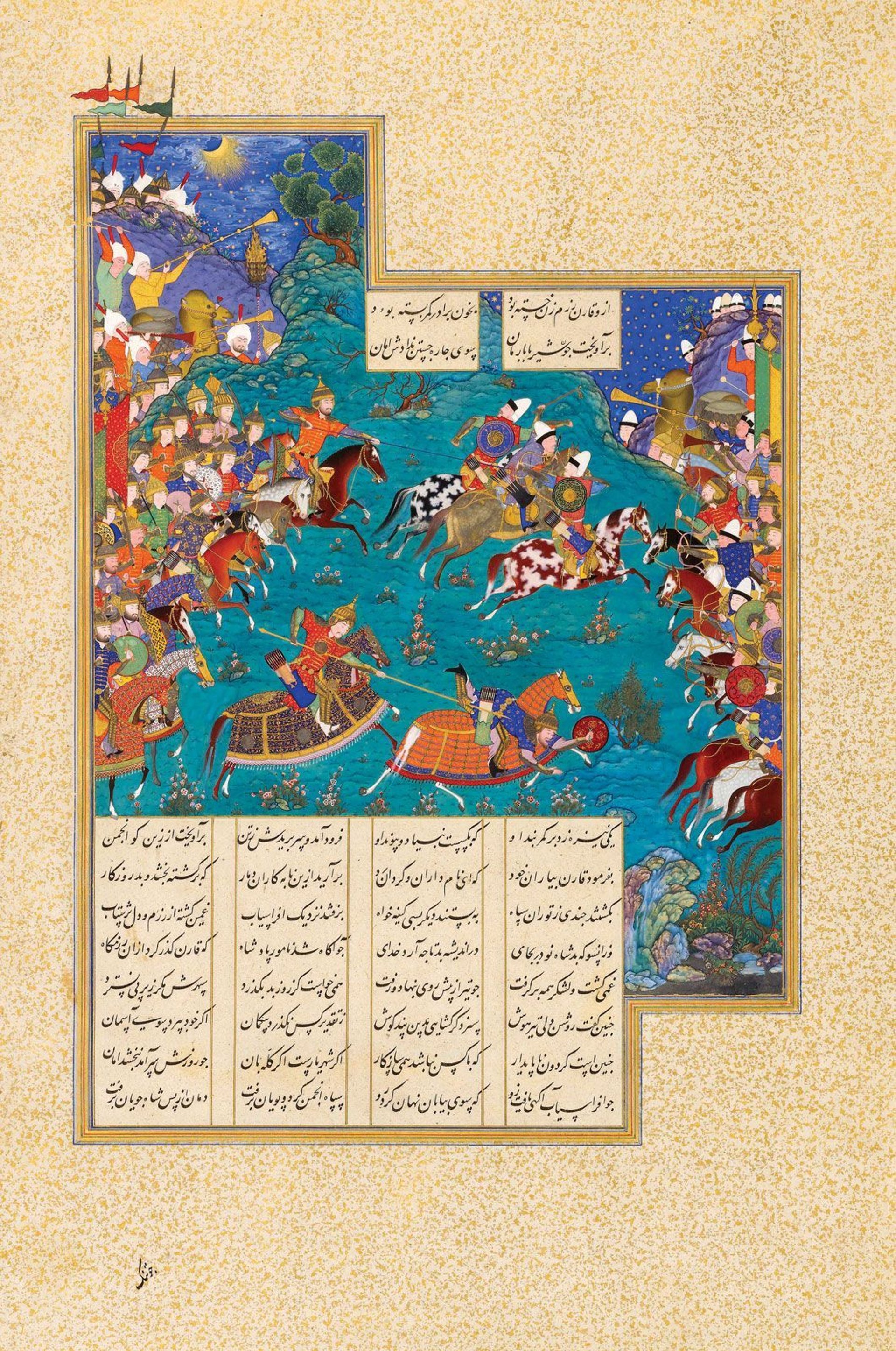 Qaran Unhorses Barman, a folio from the Shahnameh of Shah Tahmasp, Tabriz (around 1523-35) © The Sarikhani Collection