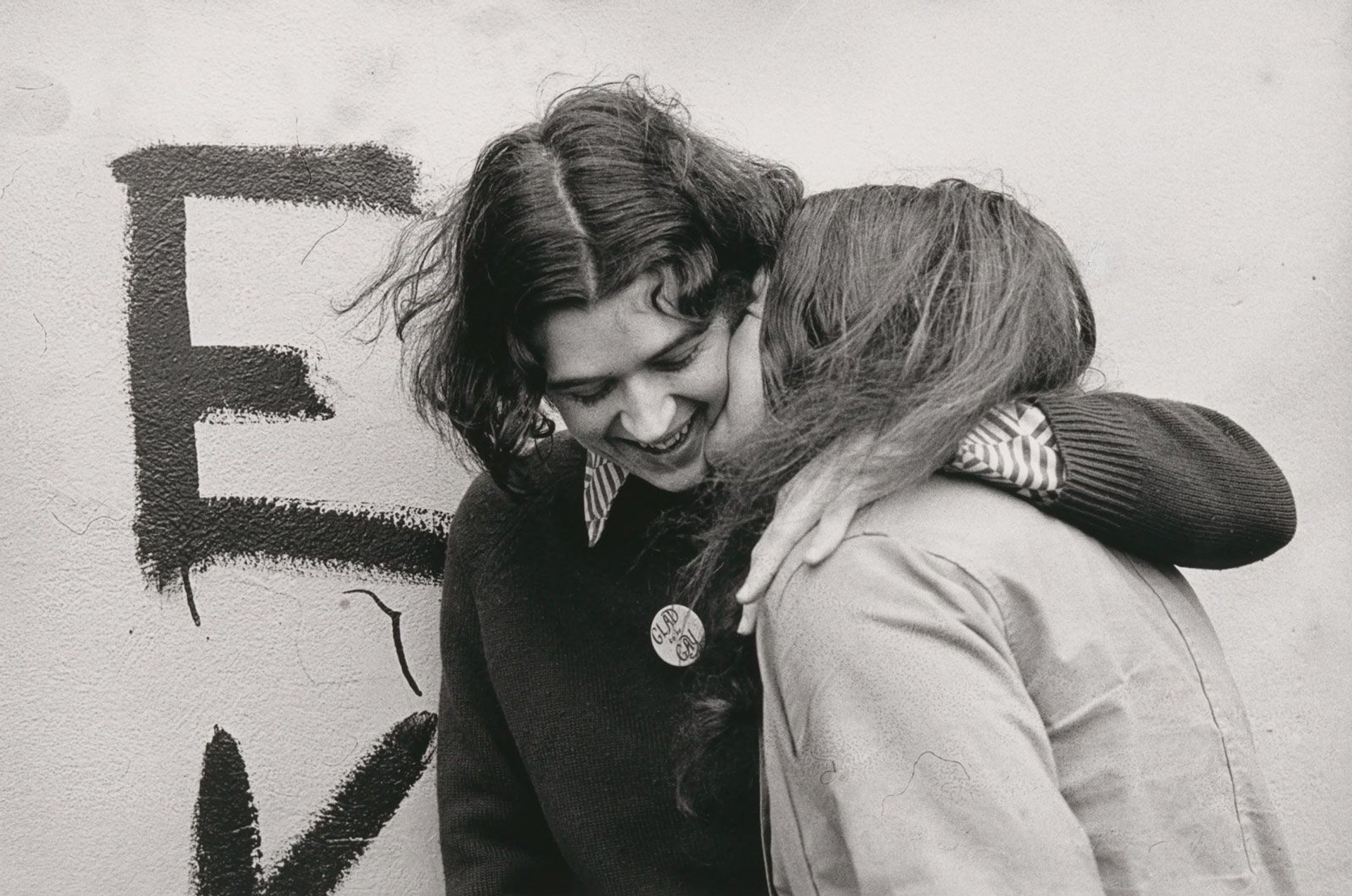 Ponch Hawkes’s No title (Two women embracing, ‘Glad to be gay’) (1973) © Ponch Hawkes, 2018