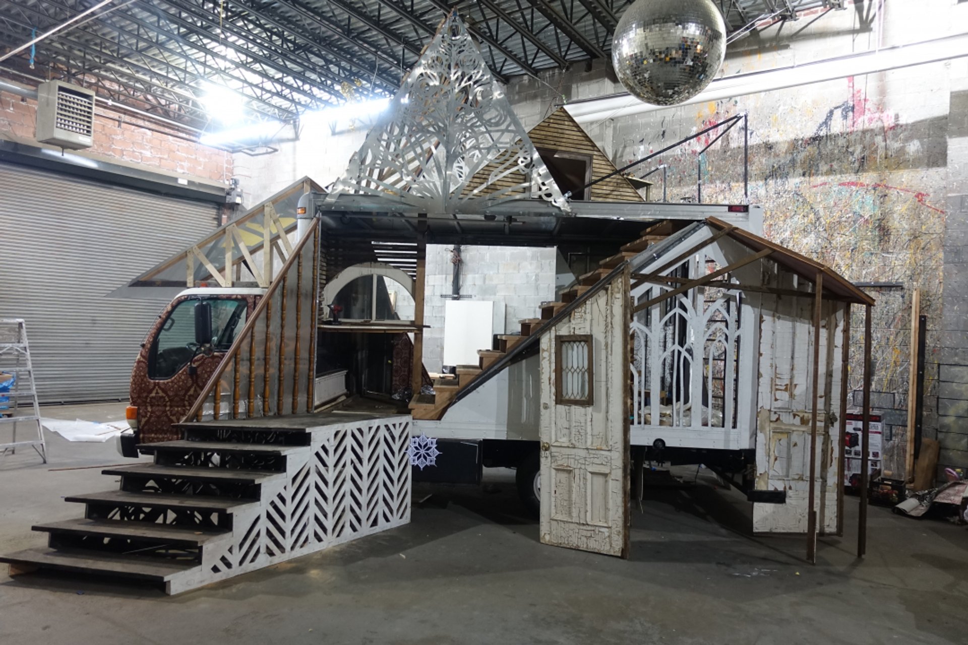 The Brooklyn-based street artist Swoon has created a diorama-styled sculpture that folds out from a 14 foot-tall box truck titled The House Our Families Built Photo: Caledonia Curry/Swoon Studio