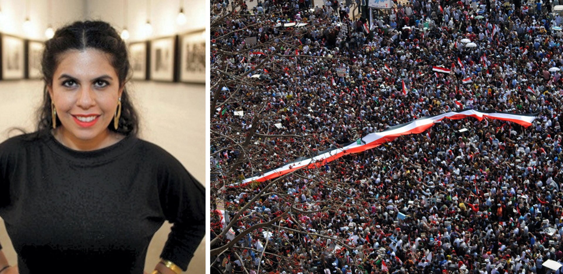 Left: artist Manal Al Dowayan; right: protests in Tahrir Square, Cairo, on 1 April 2011 Tahrir: Lilian Wagdy