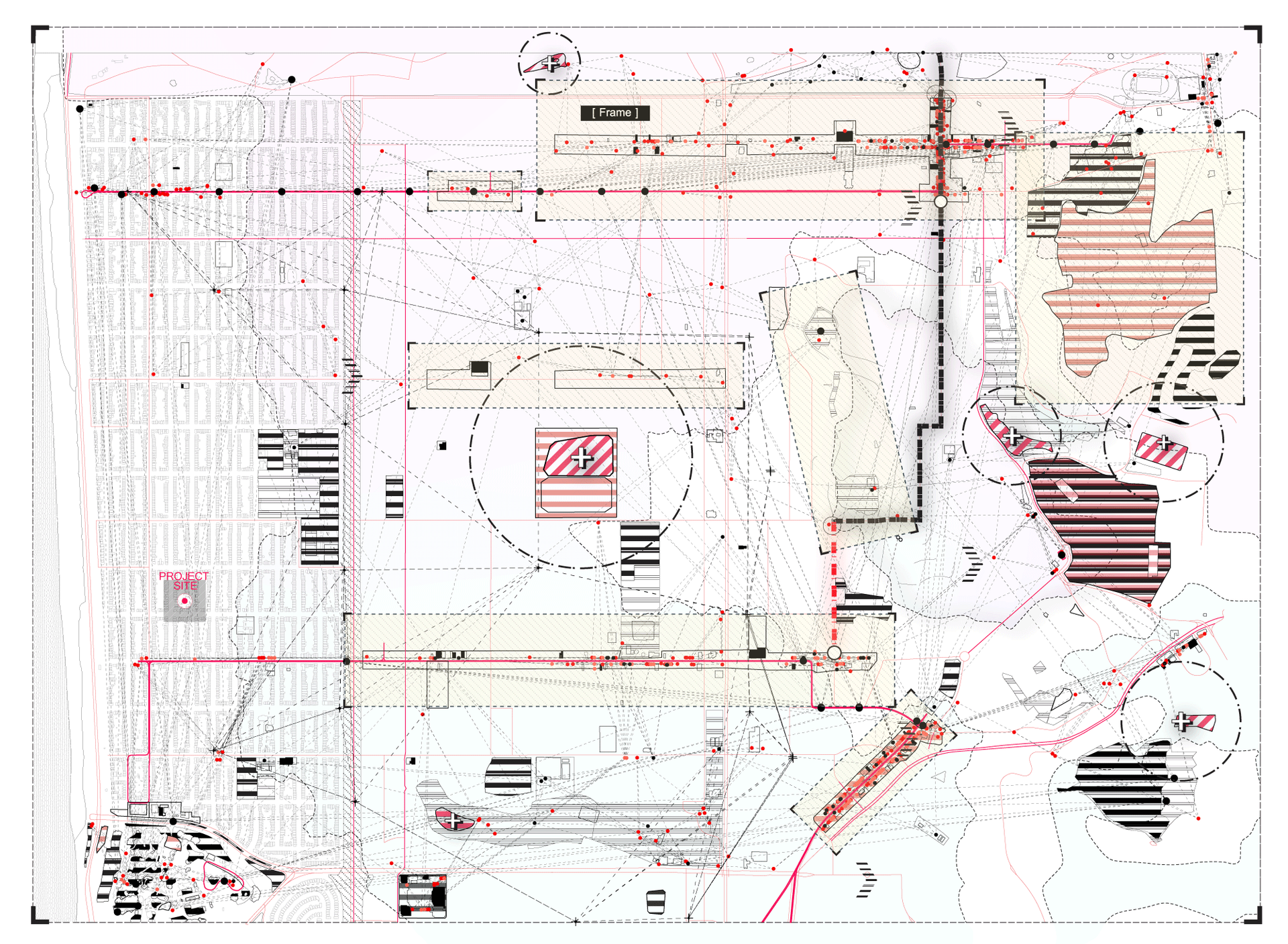 The winner in the digital category was Chenglin Jin, of the University of California, Berkeley, with a drawing in the form of a site analysis called Re-reading Metropolis, executed in Rhinoceros 3D and Adobe Illustrator. It is a proposal for San Francisco’s Sunset District, aiming to create connections between residential and commercial areas like a kind of map—the hatched parts, for example, being the public spaces, while the dots are businesses. “There are many different layers in how the drawing was worked up,” said Chenglin.