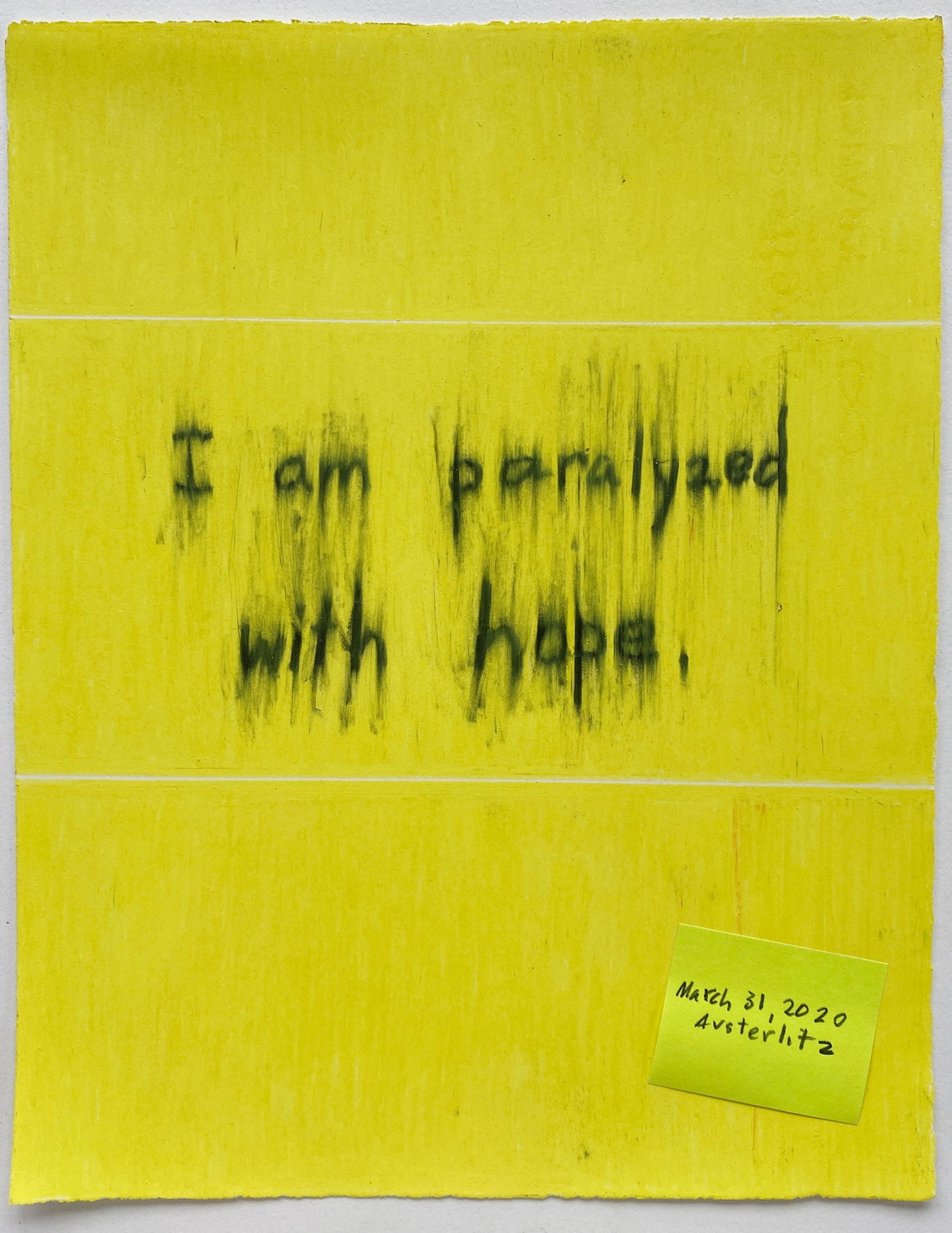 Roni Horn is a unique artist whose work across virtually every medium manages to encapsulate her sensibilities—her desire for awe, her humour, her love of the poetic—while translating each of them into different kinds of work with an enigmatic touch. In this exhibition, Horn is showing only drawings and work on paper. On view are works from the artist’s Wits’ End series, her Yet series and the massive 406-part drawing LOG, which is arguably a series unto itself. LOG is a diaristic suite of drawings completed daily between March 2019 and May 2020 and displayed together as a single installation. The work maps the passage of time in a manner that recalls On Kawara’s Date Paintings or Byron Kim’s Sunday Paintings, but the touch is uniquely Horn’s. Photography, drawing and collage coalesce into a portrait of grace, grief and time, things that we may have an abundance of at this moment in history.