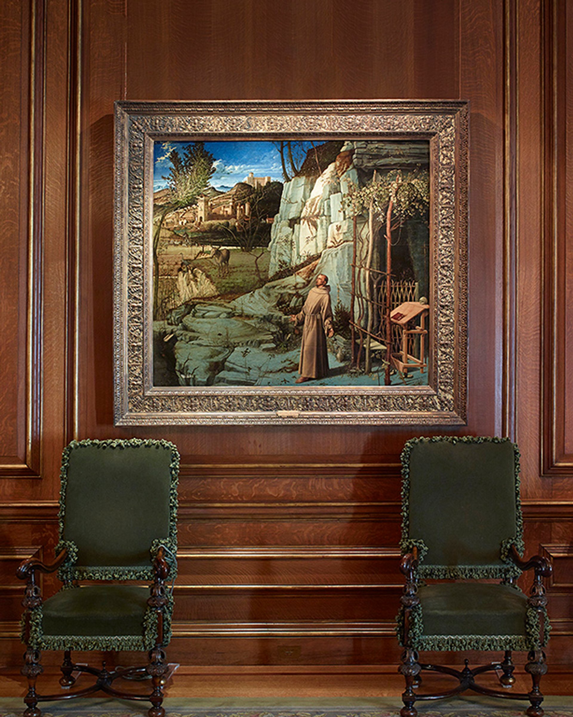Bellini's St. Francis in the Desert in its longtime setting at the Frick mansion on East 70th Street The Frick Collection; photo: Michael Bodycomb