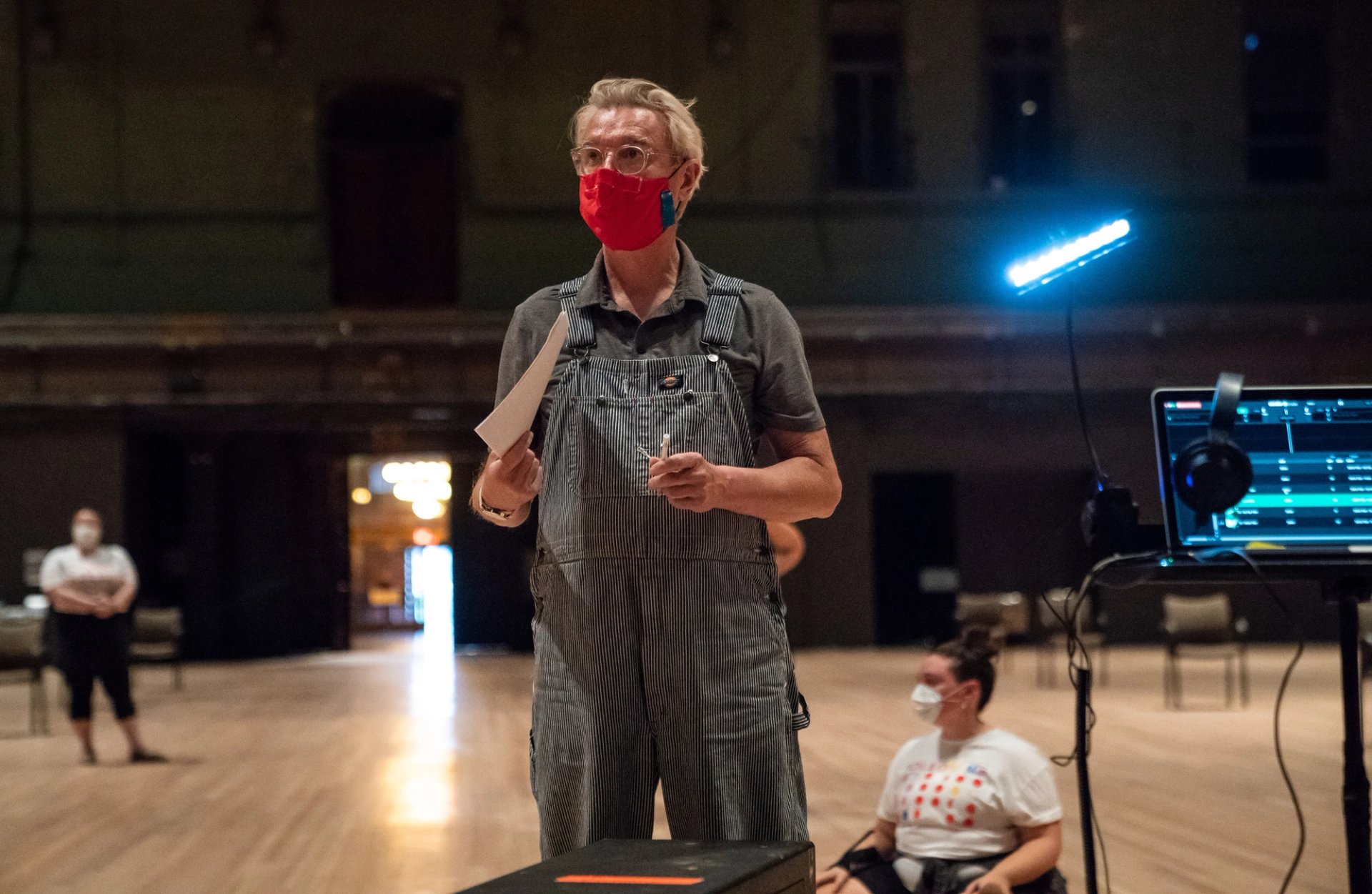 A rehearsal for Steven Hoggett, Christine Jones, and David Byrne's SOCIAL! the social distance dance club at the Park Avenue Armory Photo: Stephanie Berger