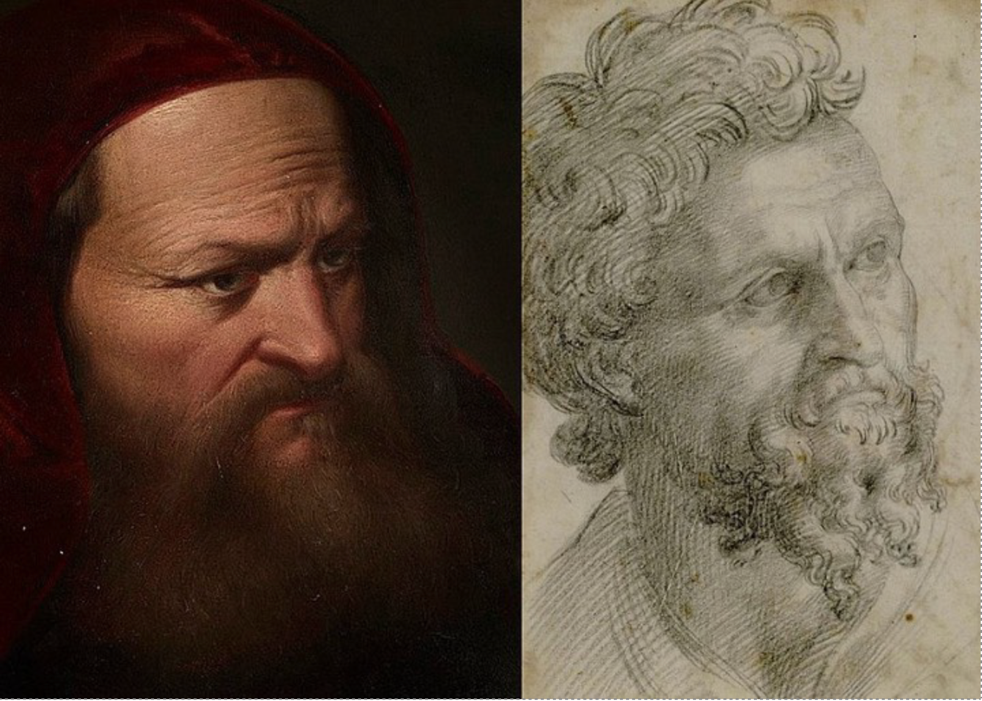 “Head of a man” by Cellini in the Biblioteca Reale of Turin (right)
