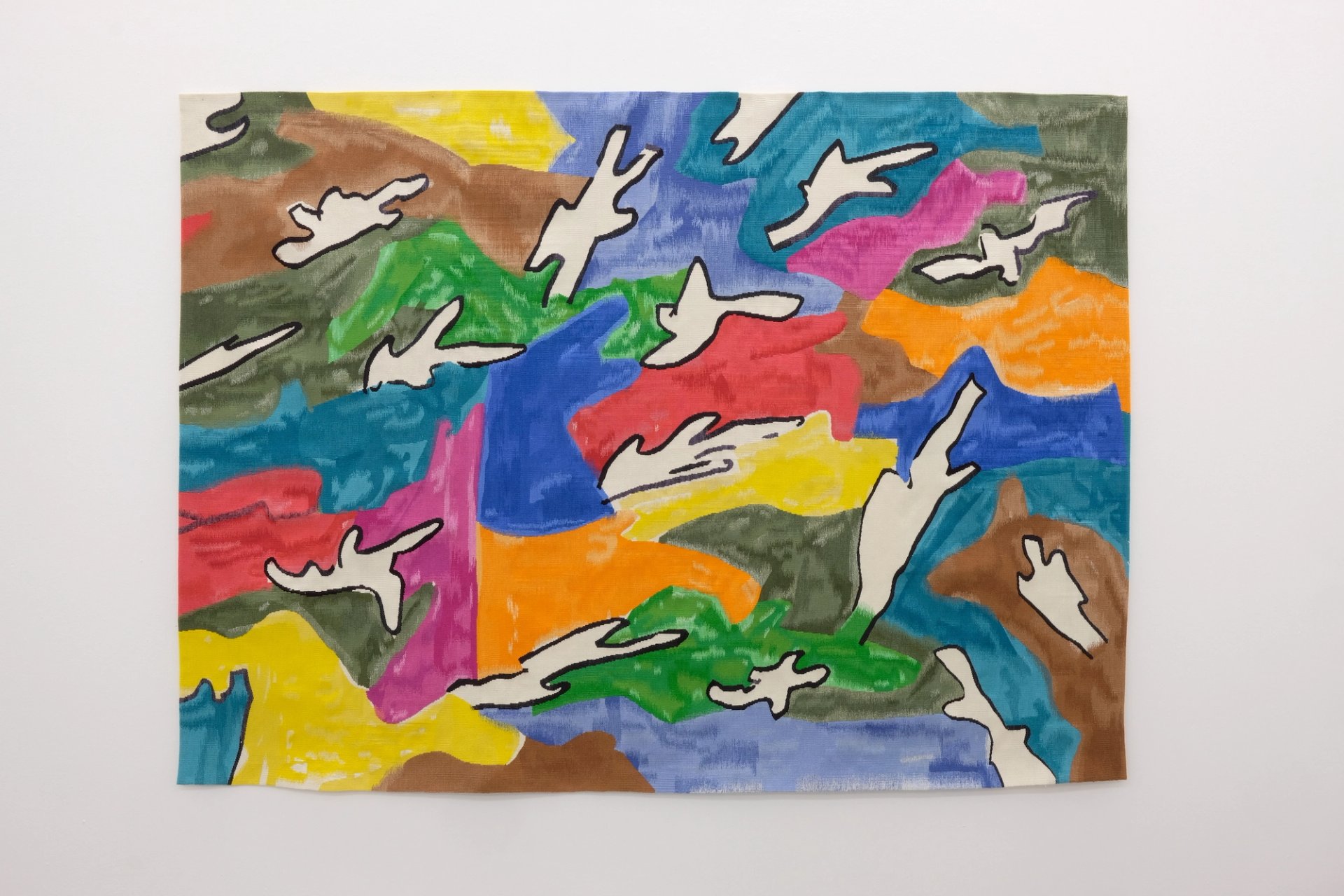 Etel Adnan's handwoven tapestry La Ronde Des Oiseaux (2019). Courtesy of the artist and Sfeir-Semler Gallery Beirut/Hamburg