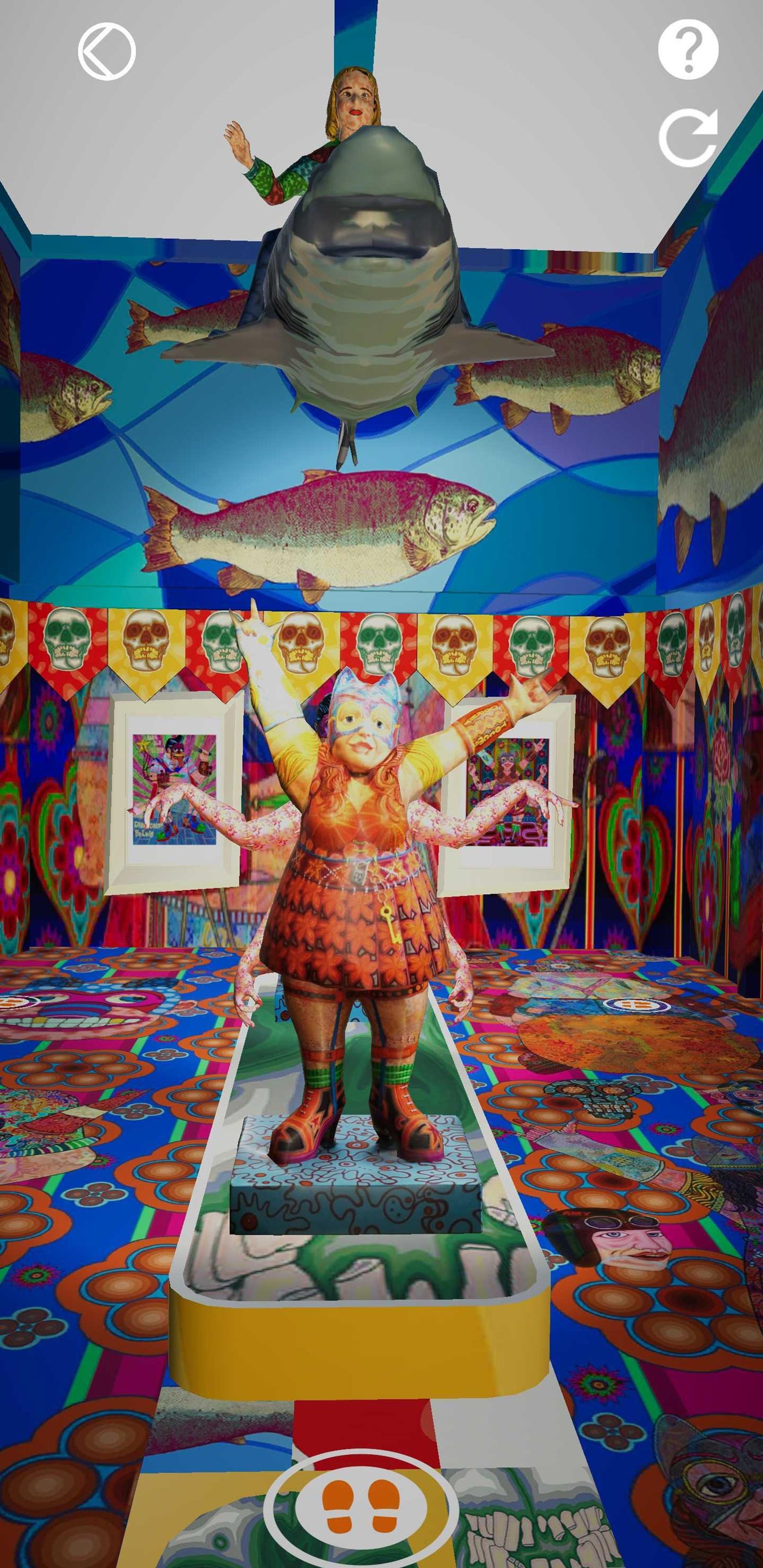 Eron Rauch: Unfolding Shrines has some of the most ambitious utilisation of AR we’ve seen. Yes, there are four artists working in very different modes, but they each stretch out in ways that feel true to their practices and generate immersive worlds more akin to VR. Though I am a bit curious why these works don’t have VR versions, as they would, for the most part, only have their sprawling spaces more richly and openly experienced in that way. (See my answer to the next question for why I think this might be important for artists using AR to consider.) One technical note coming from the video games space is that some of these installations can suffer from very serious frames-per-second drops and audio fragmentation even on a new phone, so I would encourage arts AR experiences to work harder on optimisation.