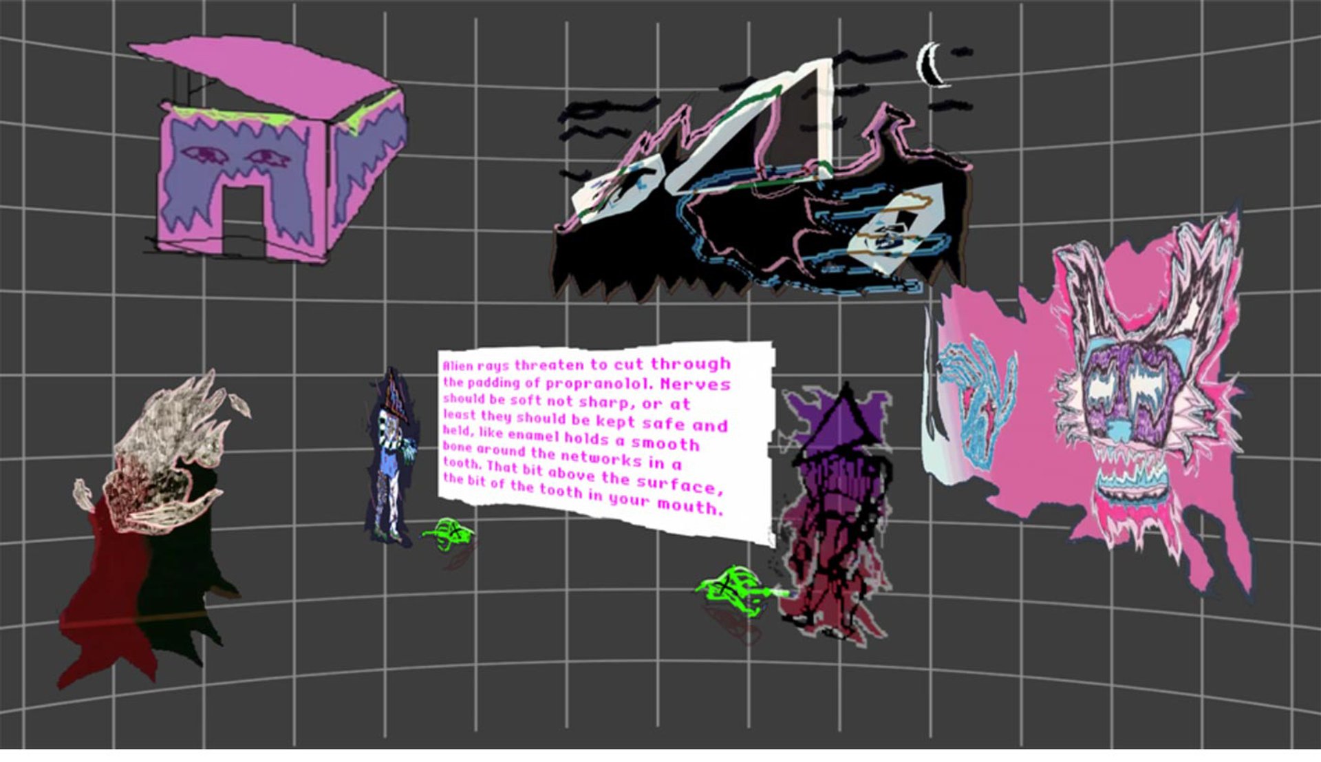 Polygonal reference to natural forms: The grass modelling and shading in Rebekah Ubuntu’s Despair, Hope and Healing feels like part of a pervasive trope in XR art