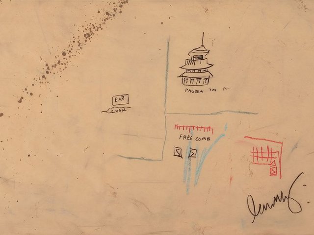 The 1986 mixed media work on paper, Free Comb with Pagoda, was bought privately in 2015 for an undisclosed sum. It had previously been offered at Heritage Auctions in Texas in 2012 for $80,000-$120,000, but failed to find a home. An NFT of the work is now being sold on OpenSea marketplace, where bidding starts at one ethereum (the equivalent of around $2,500).