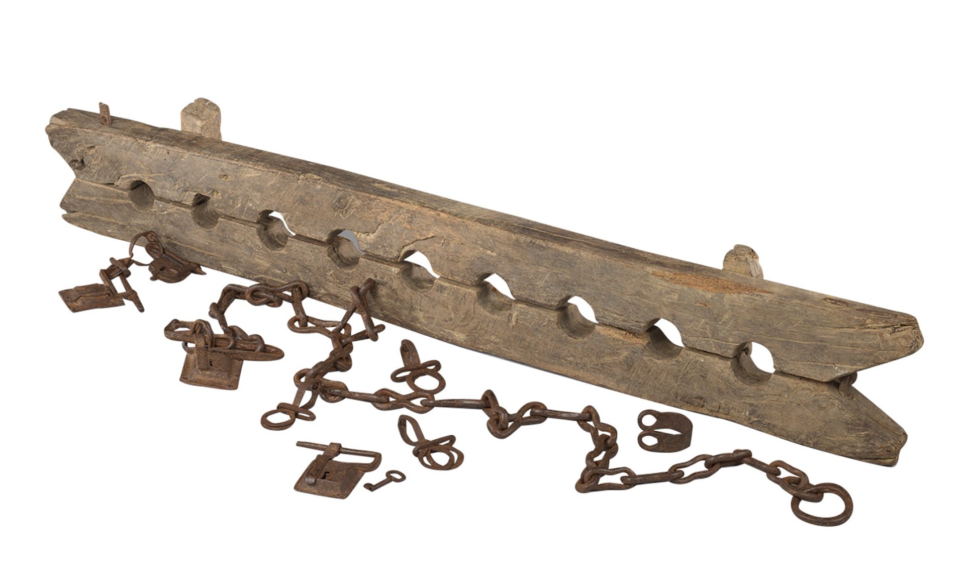 Foot stocks designed for the constraint of multiple enslaved people (around 1600–1800) Courtesy of the Rijksmuseum