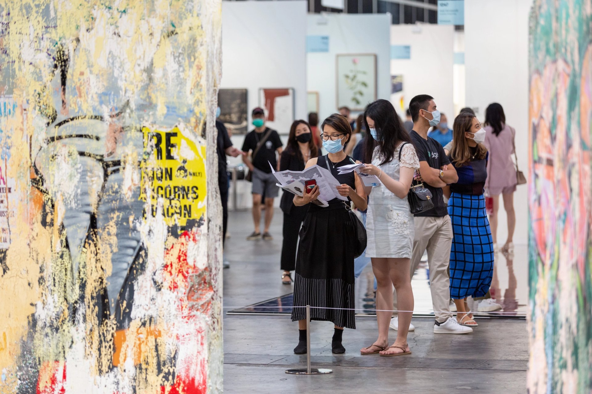 Hong Kong can now boast zero community transmissions of Covid-19, but protective measures remain in place, including 21-day quarantines for the few people permitted to enter the territory. Besides the crowd controls and mask mandate; the checking of Hong Kong’s contact tracing app; the lack of congregations above four people; a much grumbled about ban on vendors’ eating at the Hong Kong Convention and Exhibition Centre; and the whittled down size (104 galleries compared with 2019’s 242), the absence of an international presence was the greatest transformation. Over half of the participants from overseas were operating “satellite” or “ghost booths”, run by temporary staff hired by the fair, due to the difficulty of getting into Hong Kong.