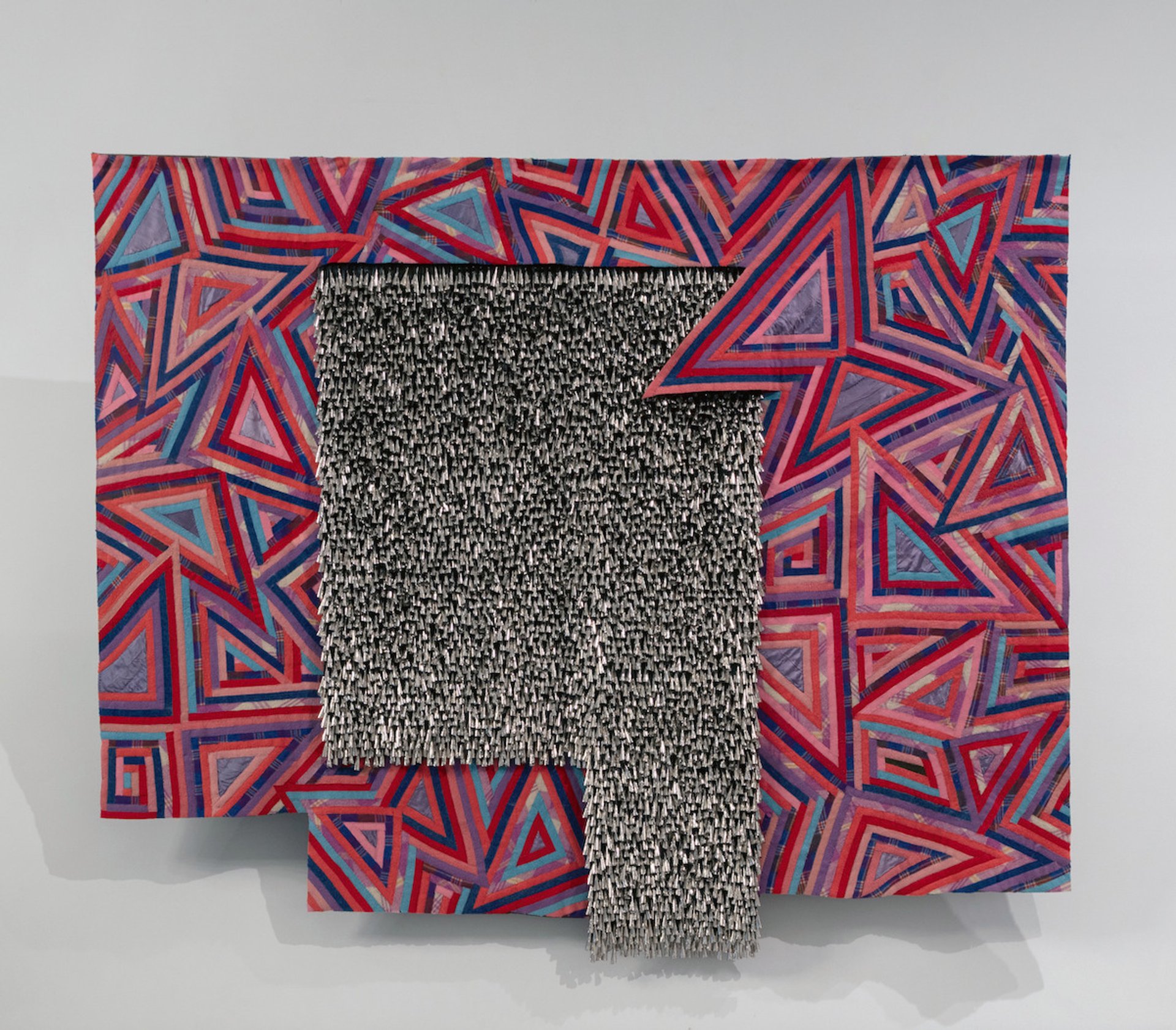 The show comprises more than 20 mixed-media sculptures, wall hangings, installations and two crowd-sourced works. The centrepiece of the exhibition, from which the show draws its title, is a she-wolf steel figure covered with more than 700 bandanas embroidered with personal messages by national and international contributors. The work was slated to be made through in-person sewing events but was completed through an online open call. It represents a “sense of sheltering—of motherhood and protection—either from others or from toxic air or from other aspects of life”, Luger says. The project took new pertinence amid the “isolation and precarity of the shelter-in-place format we were living through”, he adds.