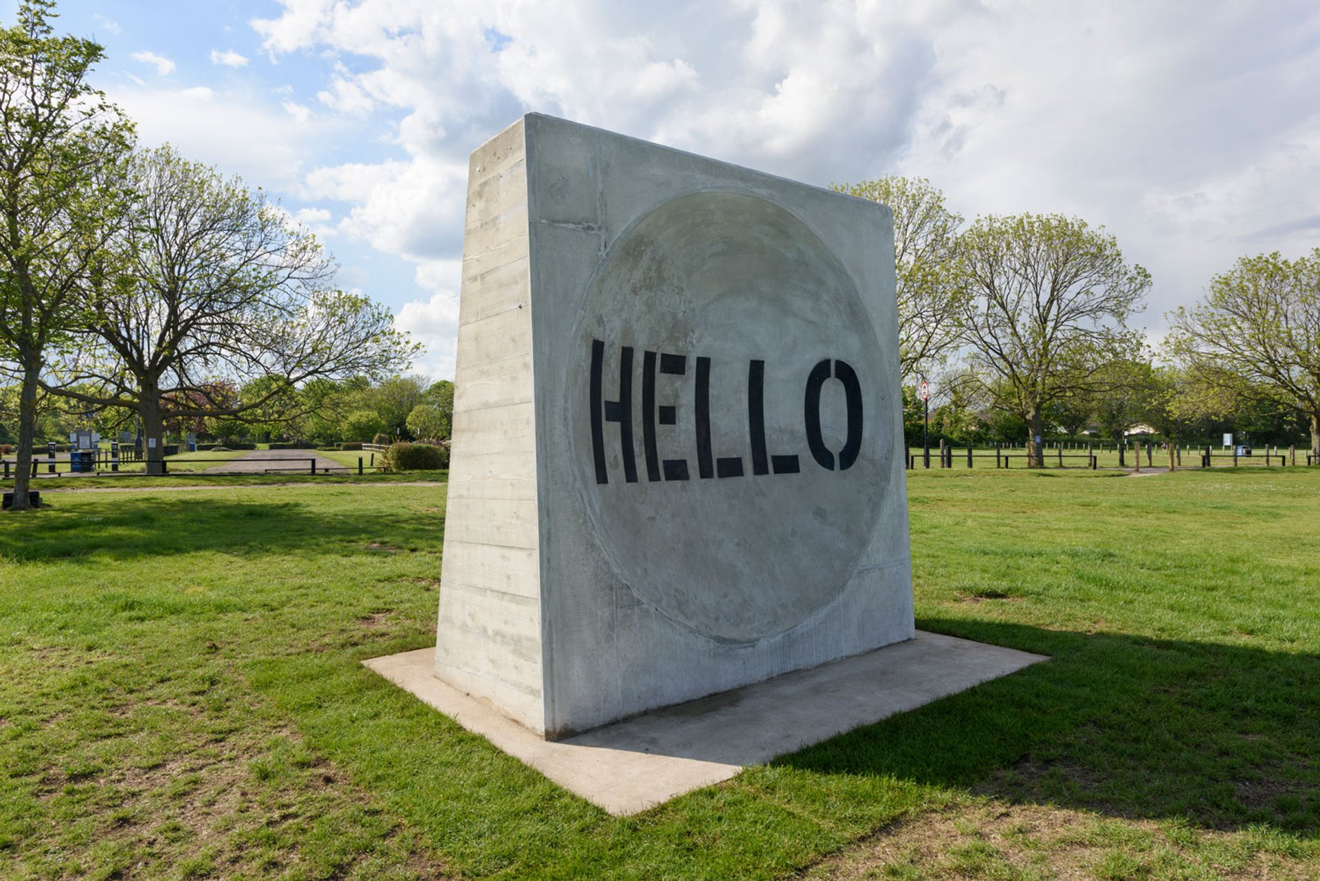Another work that is facing out to sea is the British artist Katrina Palmer’s Hello, based on the concrete sound mirrors built after the First World War to detect incoming airplane attacks. But rather than warning of impending doom, her concrete sculpture greets Europe with a simple “hello”.