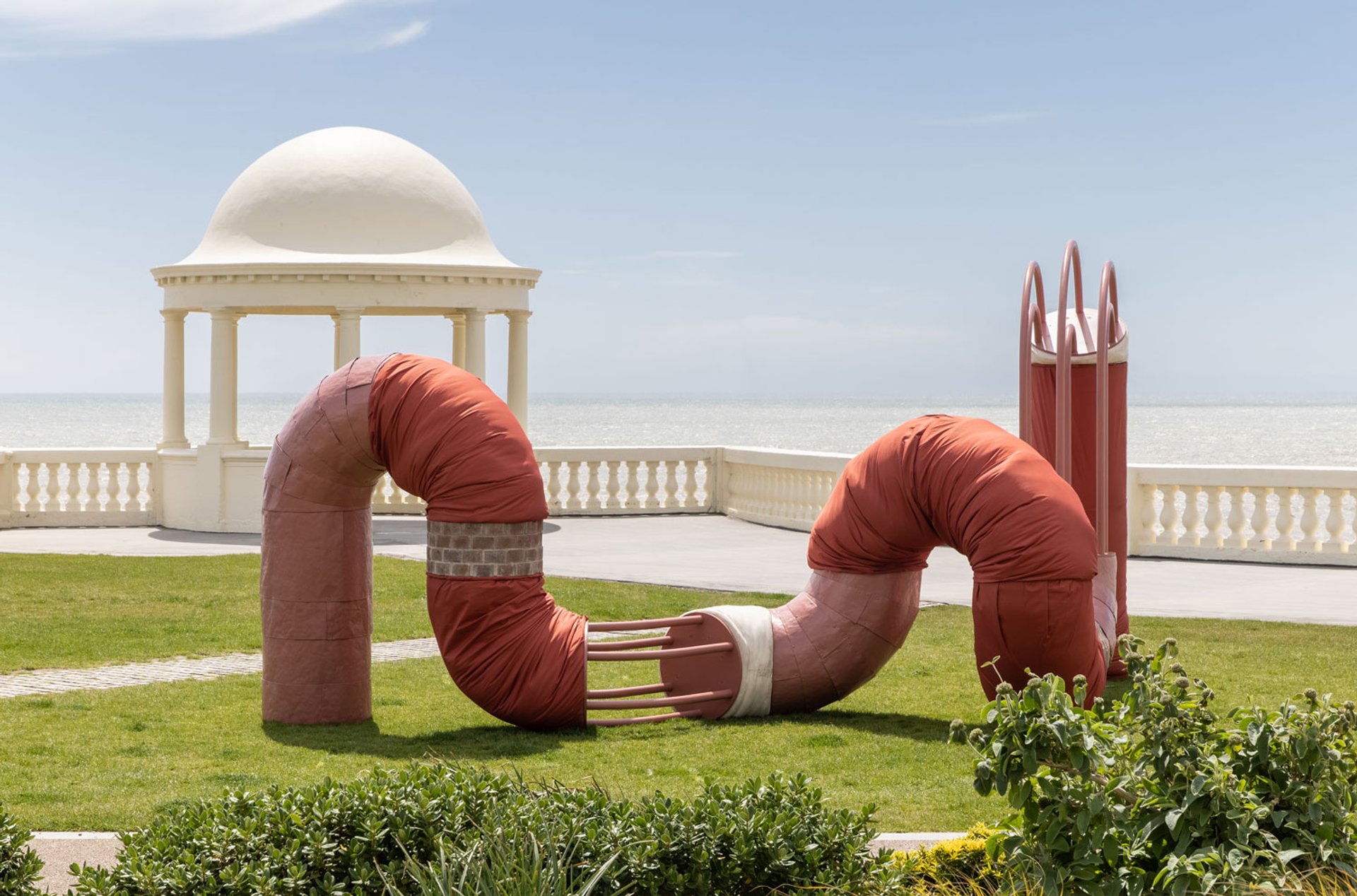 A giant worm, a plaster Roman god, a seawall made of soft seating and a giant chalk hairpin have all appeared along the southeast coast of England. The four works of art by Holly Hendry, Pilar Quinteros, Andreas Angelidakis and Mariana Castillo Deball, are part of Waterfronts, a new initiative organised by England’s Creative Coast organisation.