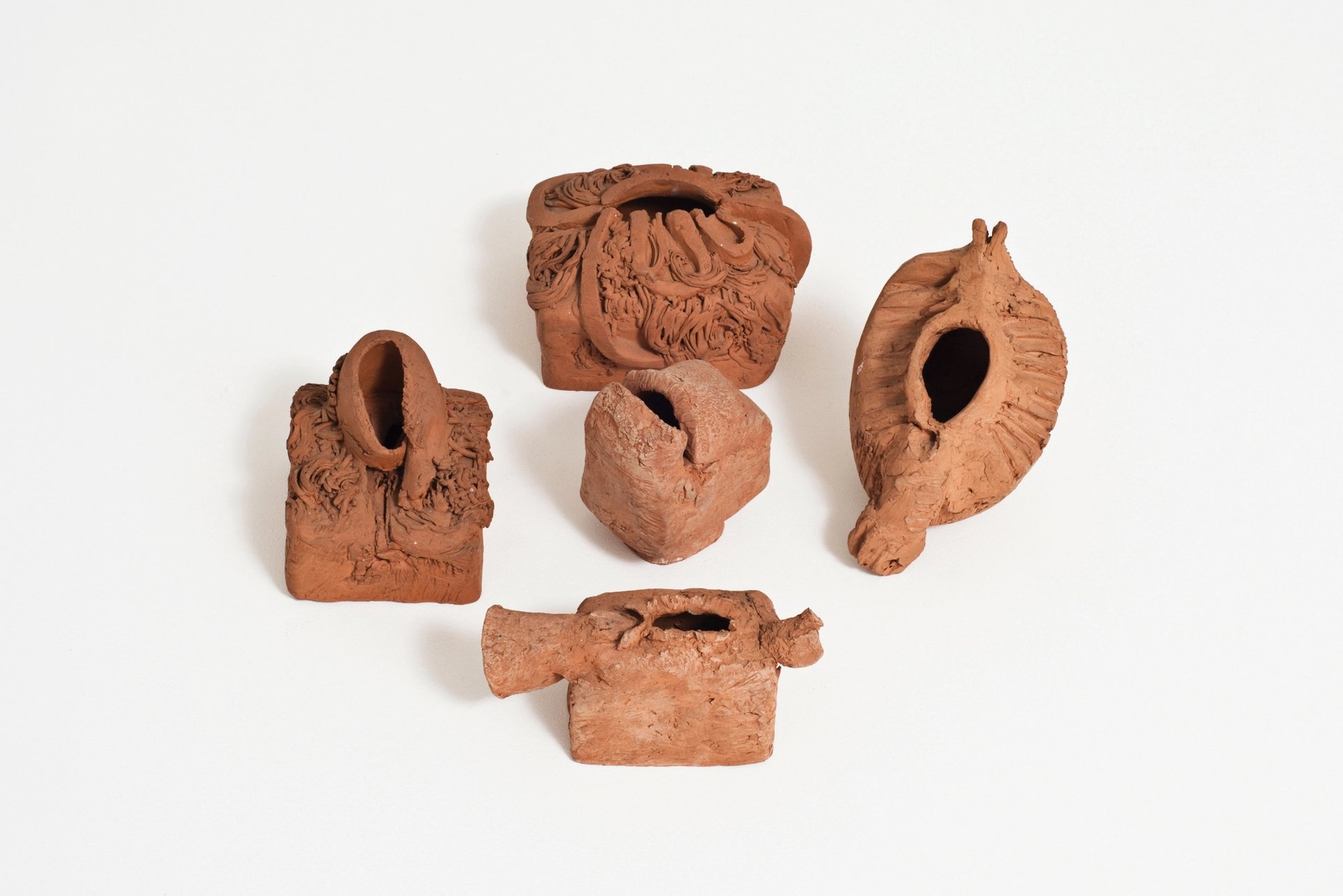 Hannah Wilke, Five Androgynous and Vaginal Sculptures (1960-61), terracotta Hannah Wilke Collection & Archive, Los Angeles. Courtesy Alison Jacques, London. © 2021 Scharlatt Family, Hannah Wilke Collection & Archive, Los Angeles / Licensed by VAGA at Artists Rights Society (ARS), NY