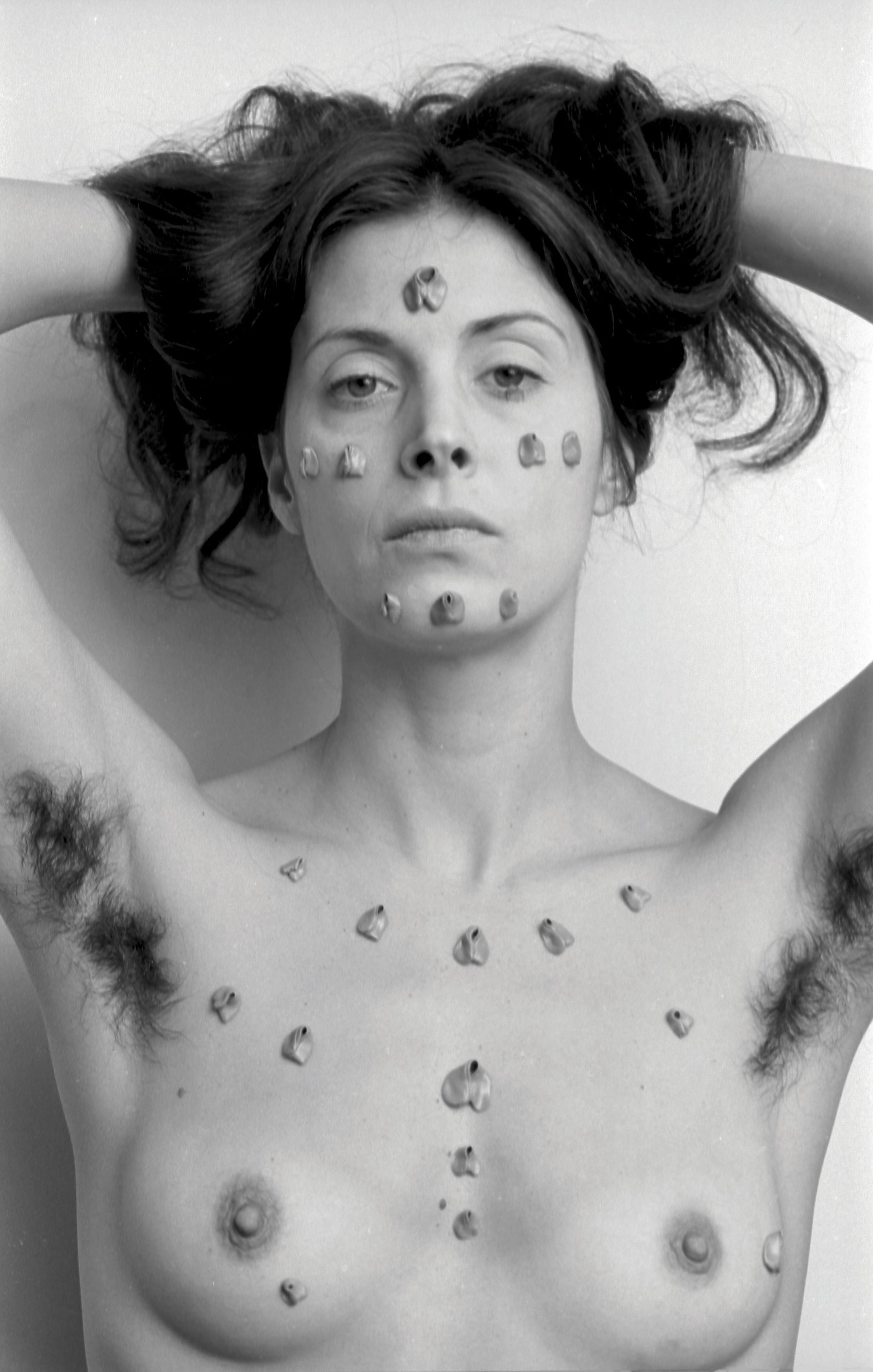 Hannah Wilke, S.O.S. Starification Object Series (1974), lifetime silver gelatin print Collection of Michael and Sharon Young, courtesy of Alison Jacques, London. © 2021 Scharlatt Family, Hannah Wilke Collection & Archive, Los Angeles / Licensed by VAGA at Artists Rights Society (ARS), NY