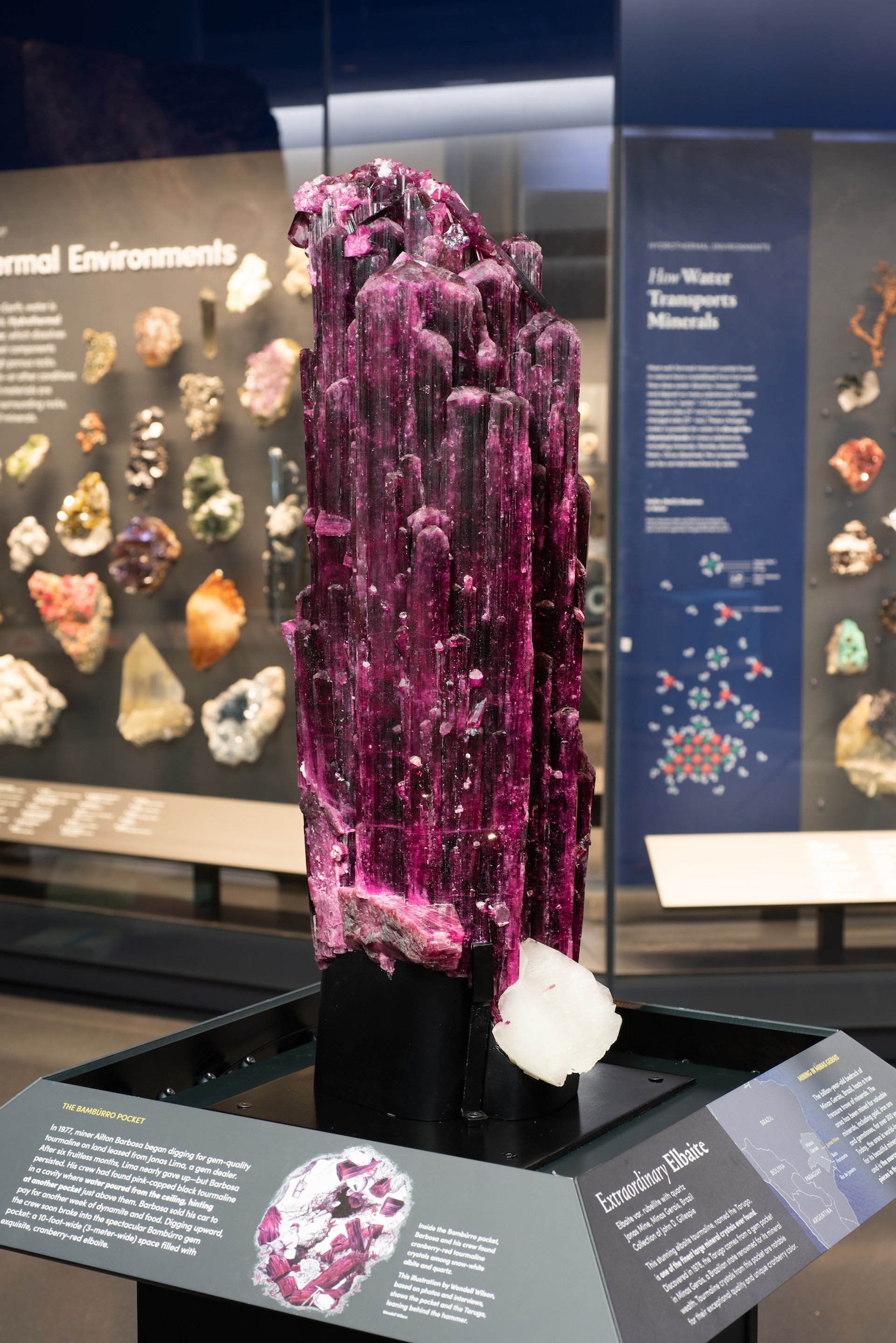 This 3-foot-tall cranberry-red elbaite tourmaline known as the Tarugo is one of the most fantastic mineral crystal clusters ever found. It was discovered in 1978 in Minas Gerais, Brazil D. Finnin/©AMNH