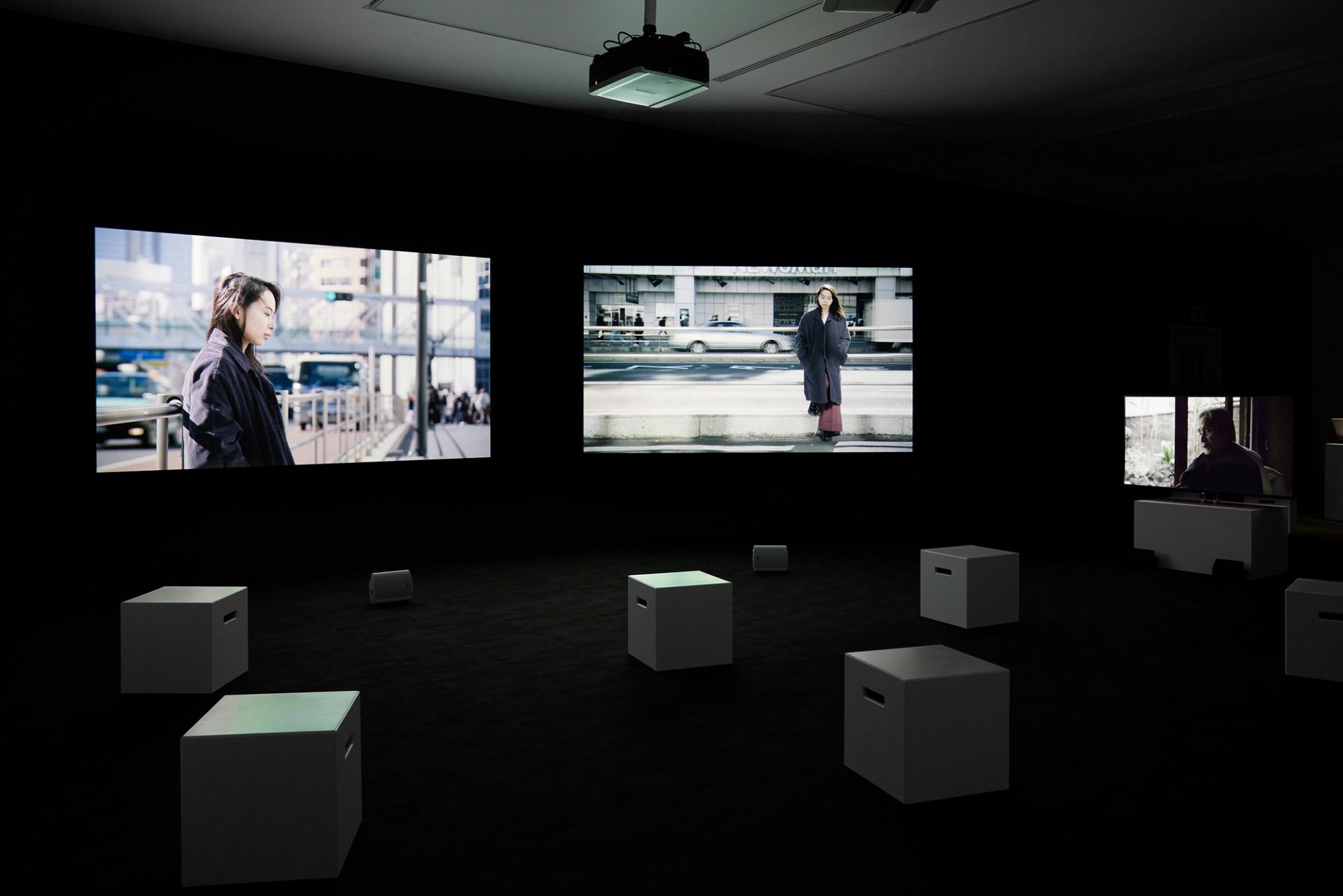 In Koizumi’s harrowing piece—first seen at the 2019 Sharjah Biennale—Kondo ponders on typed quotations from his own book and account of the atrocities, The Two Battlegrounds of a Japanese Soldier: Kondo Hajime’s Unending War (2005). On two larger screens, a group of teenagers recite the veteran’s testimonies in city streets and outside metro stations.
