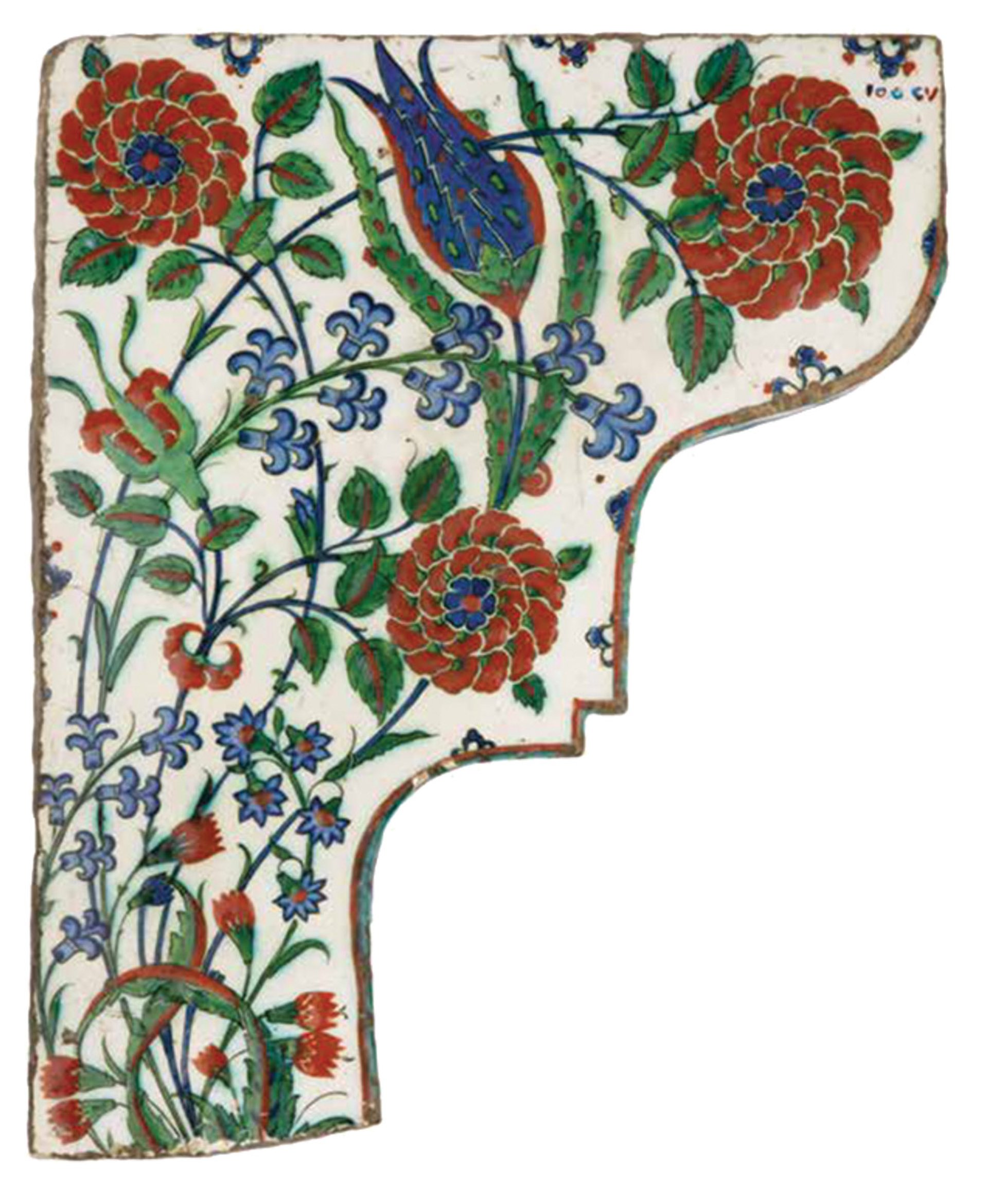 A 17th-century Iznik tile that may have framed a mosque door, window or mihrab