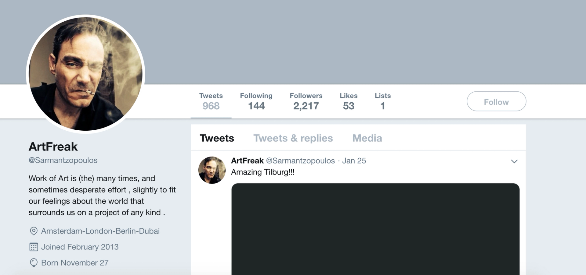 A screenshot of Sarmatzopoulos's now defunct Twitter profile
